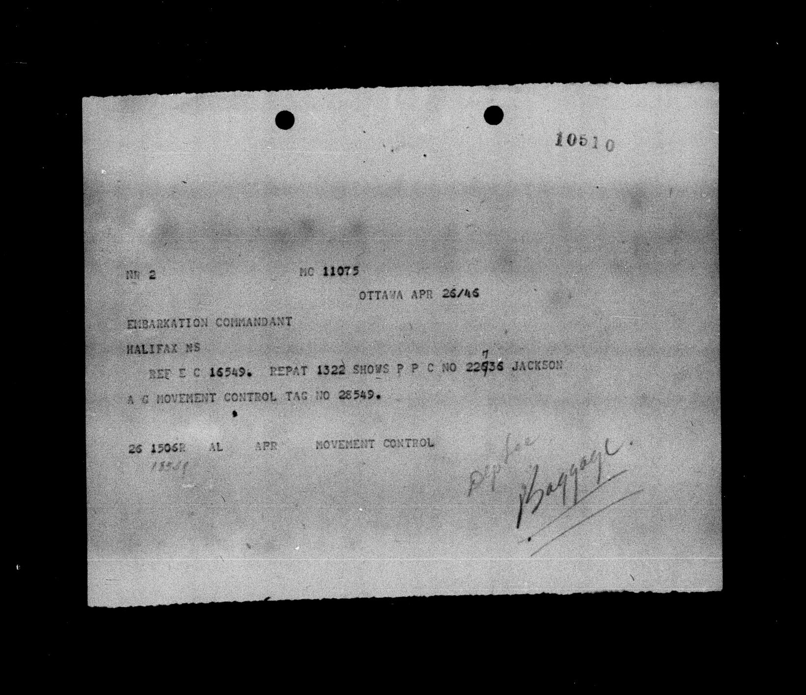 Eastbound Personnel - CONNECTOR - Port of Departure - Halifax - HQC 63-302-1172
