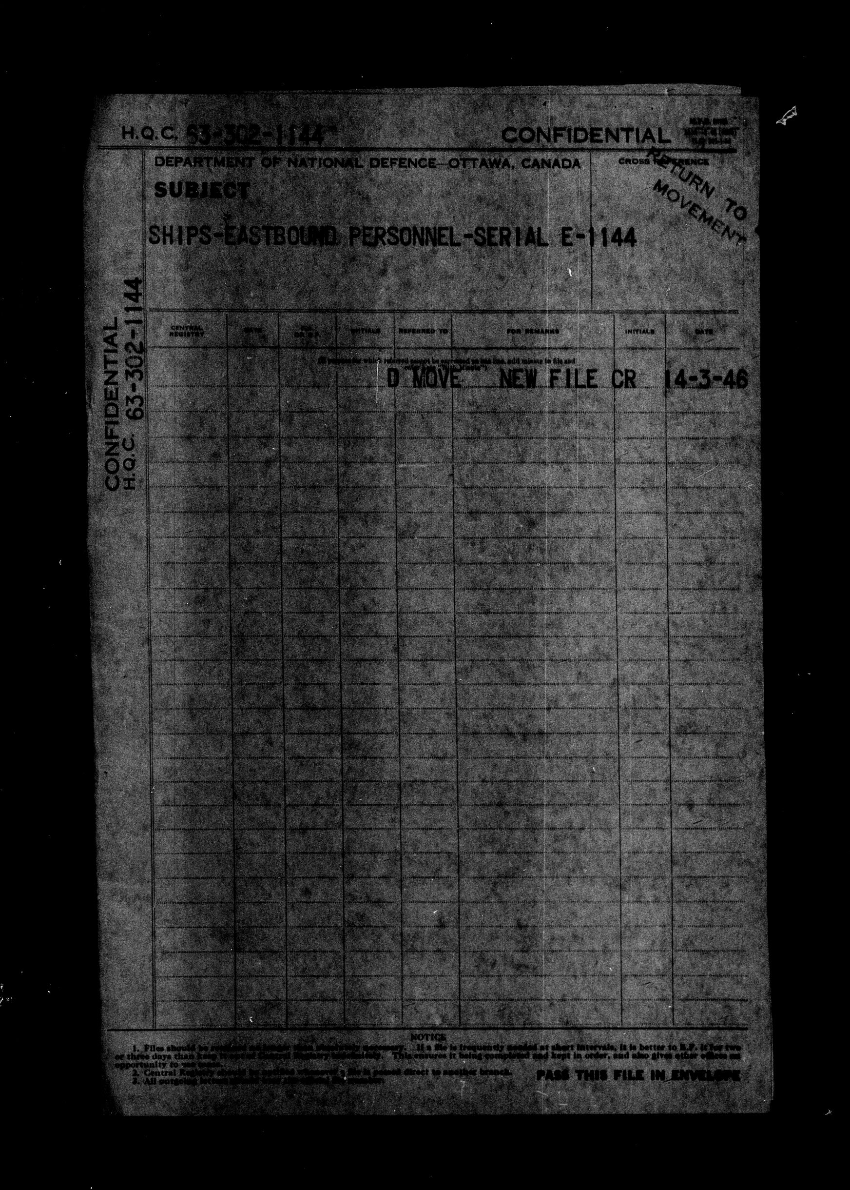 Eastbound Personnel - CONNECTOR - Port of Departure - Halifax - HQC 63-302-1172