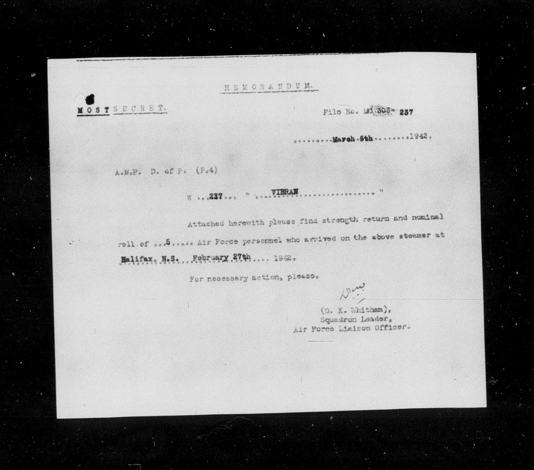 Westbound Personnel - VIBRAN - Port of Departure - Halifax - HQS 63-303-237 - image 05144