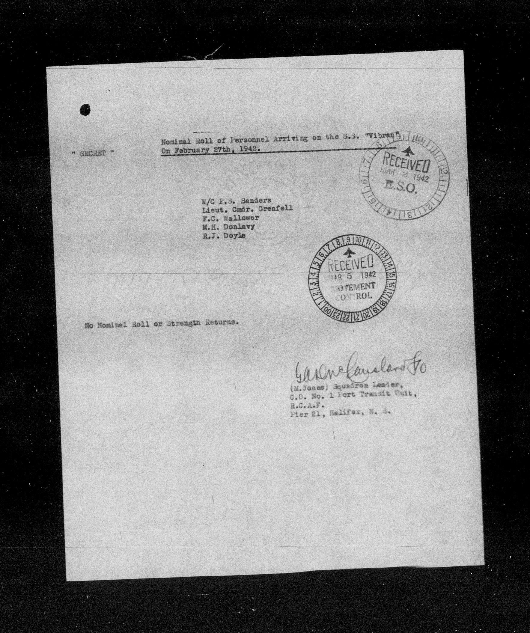 Westbound Personnel - WOLFE - Port of Departure - Halifax - HQS 63-303-138 - image 01629
