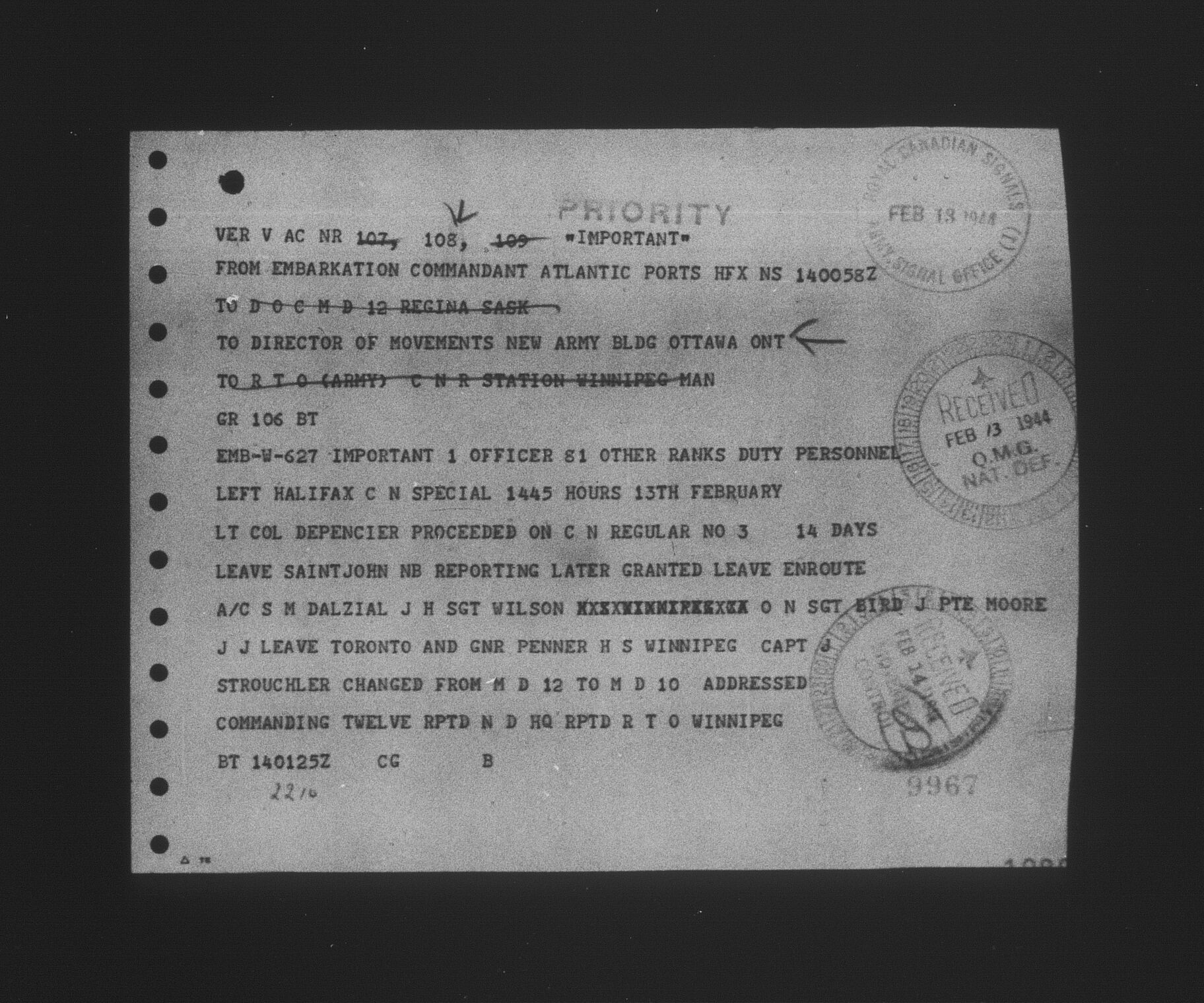 Westbound Personnel - FORT AMHERST - Port of Departure - Halifax