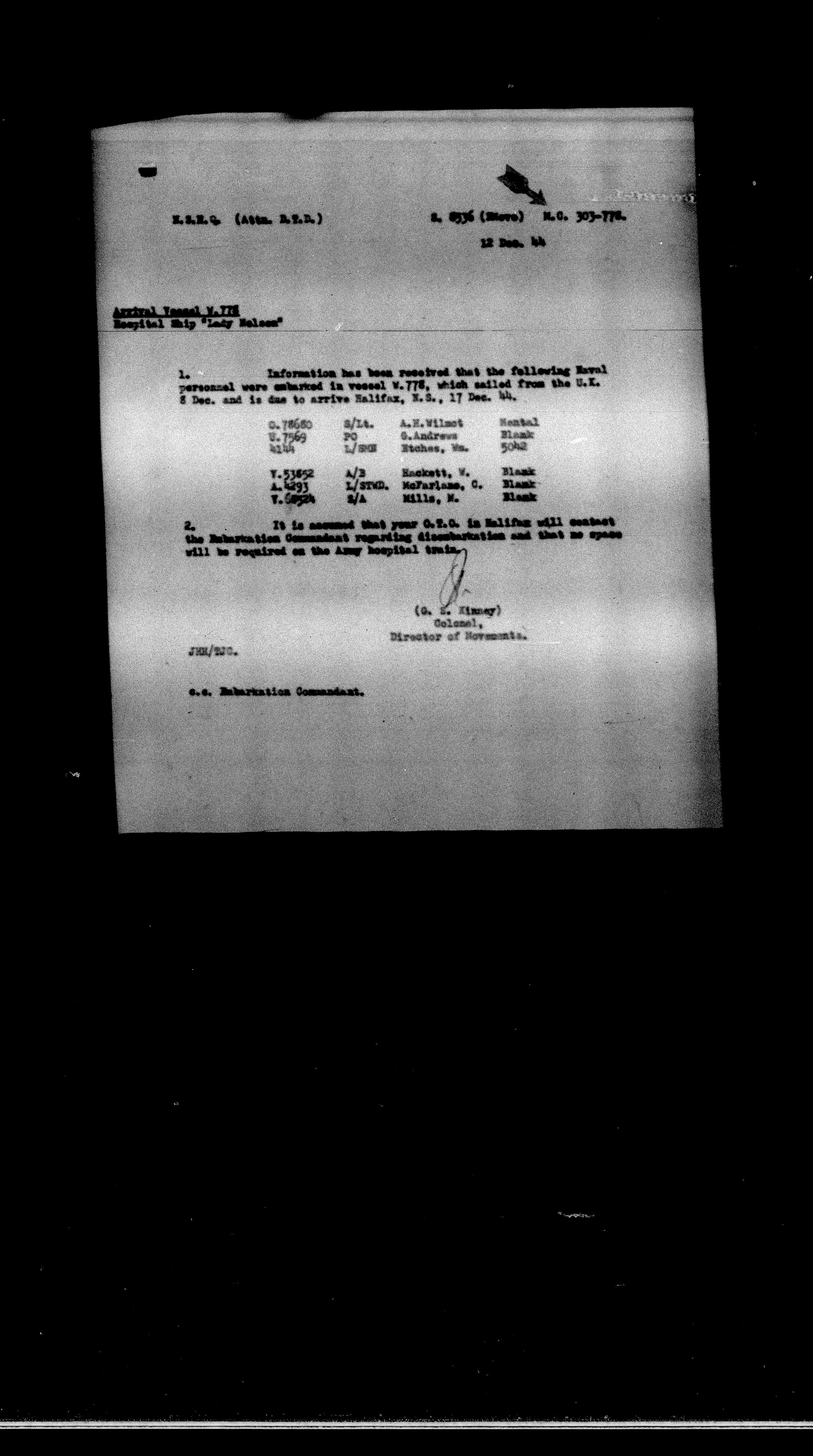 Directorate of Movements : Marine files - 5716