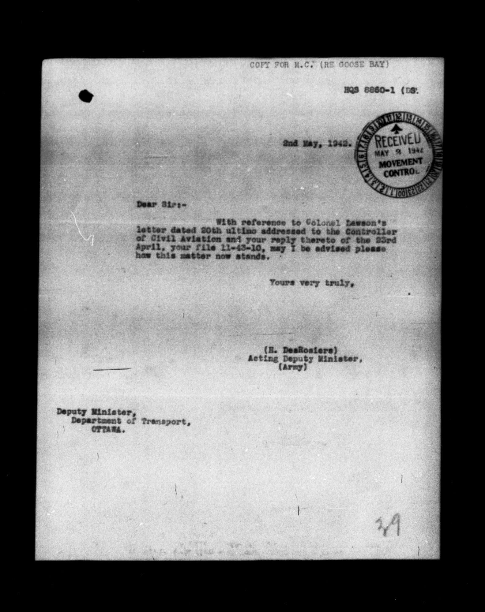Directorate of Movements : C-5735