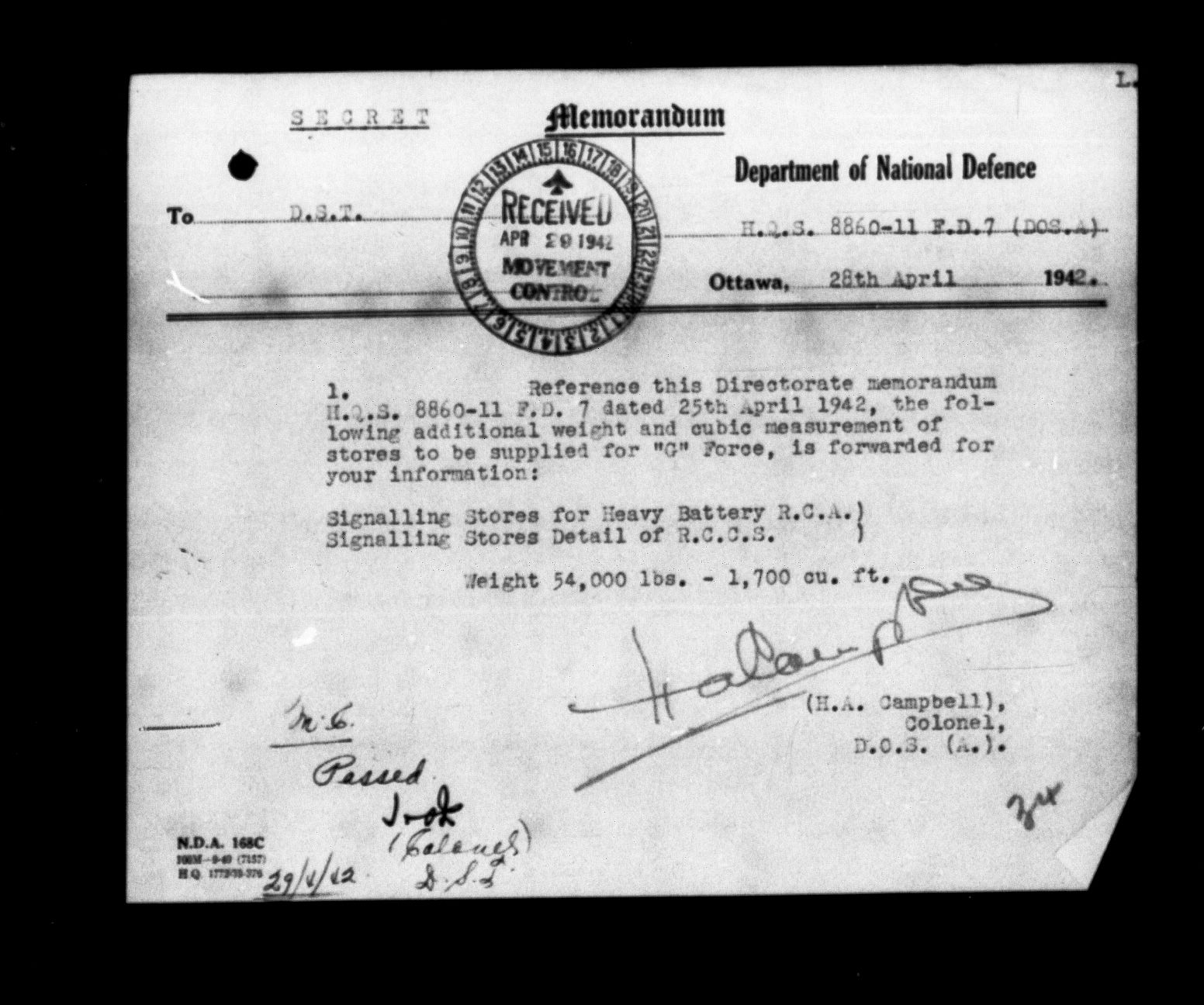 Directorate of Movements : C-5735