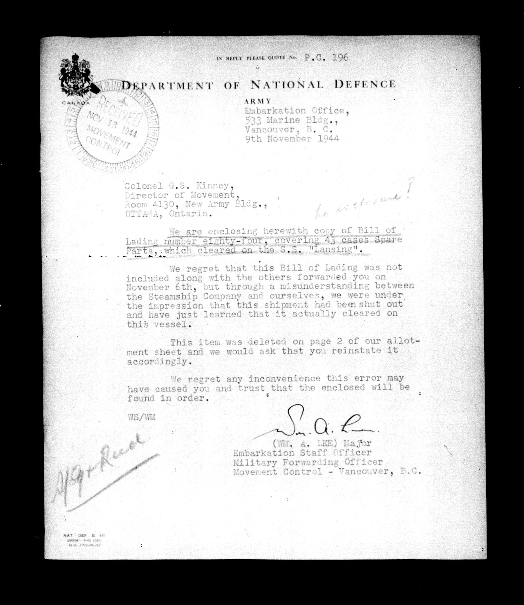 Directorate of Movements : Marine files - 5739