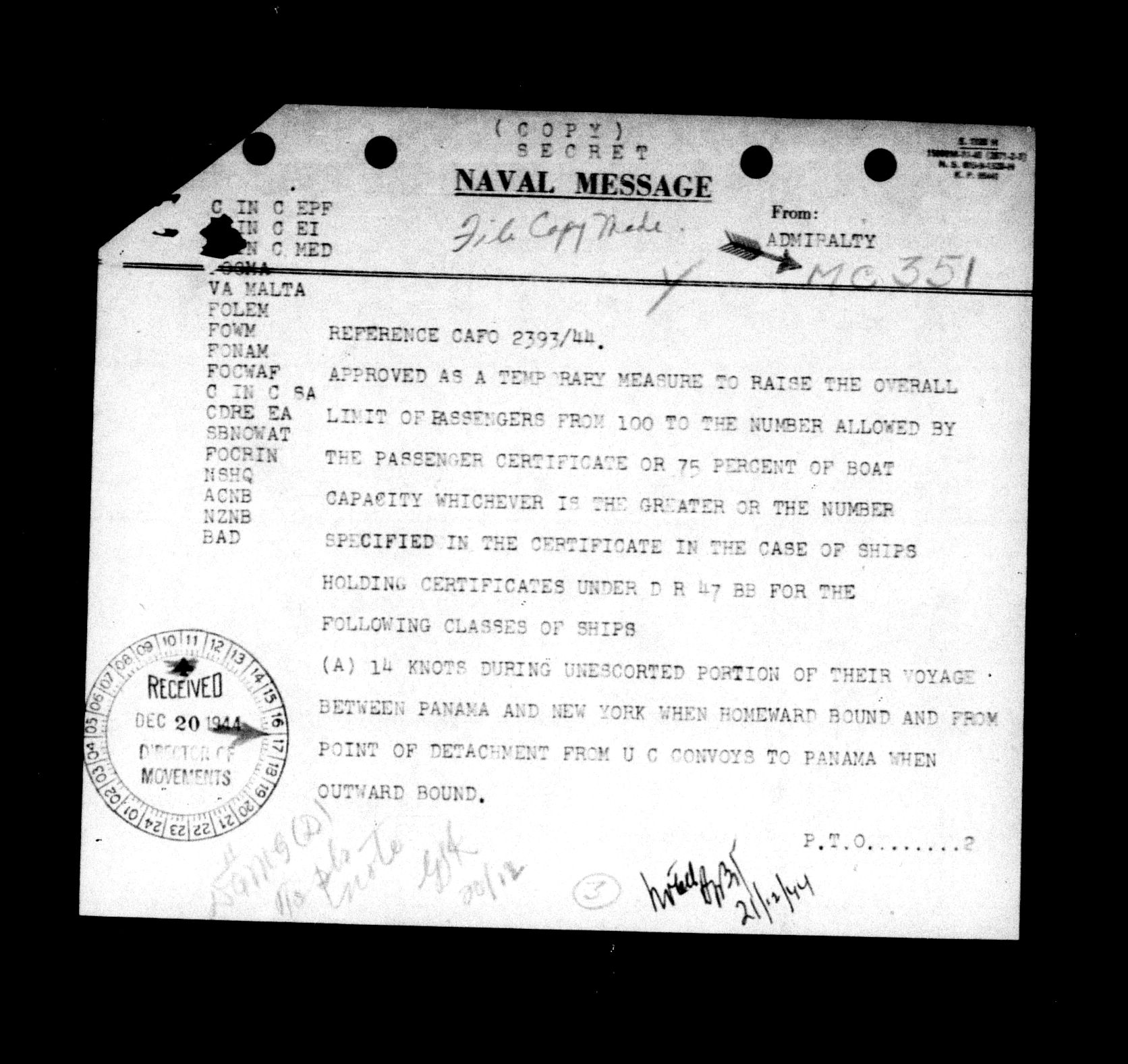 Directorate of Movements : Marine files - 5739