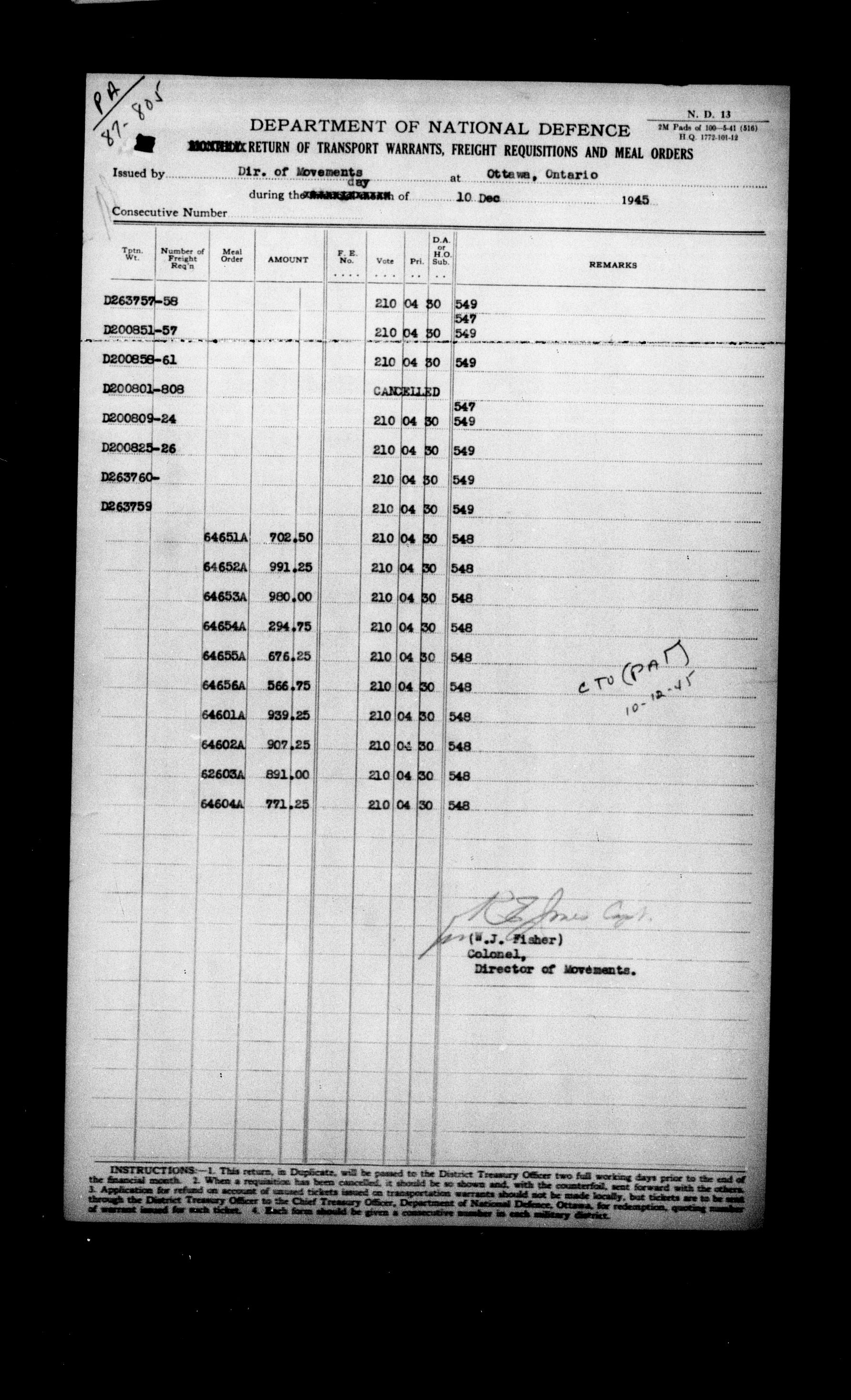 Directorate of Movements : C-5760
