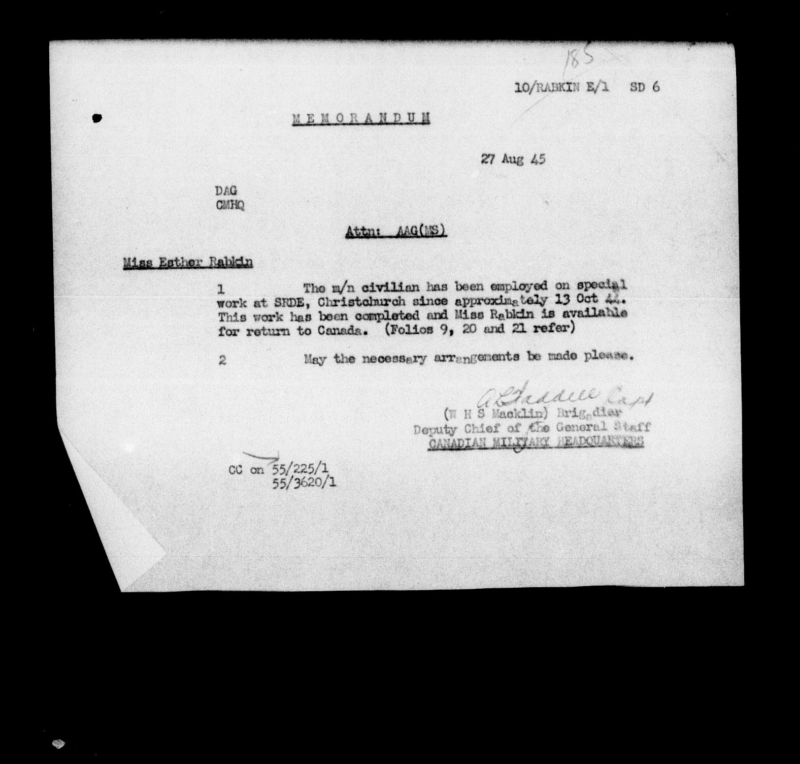 Canadian Military Headquarters, London (CMHQ), Files Block No. 55 - 5771