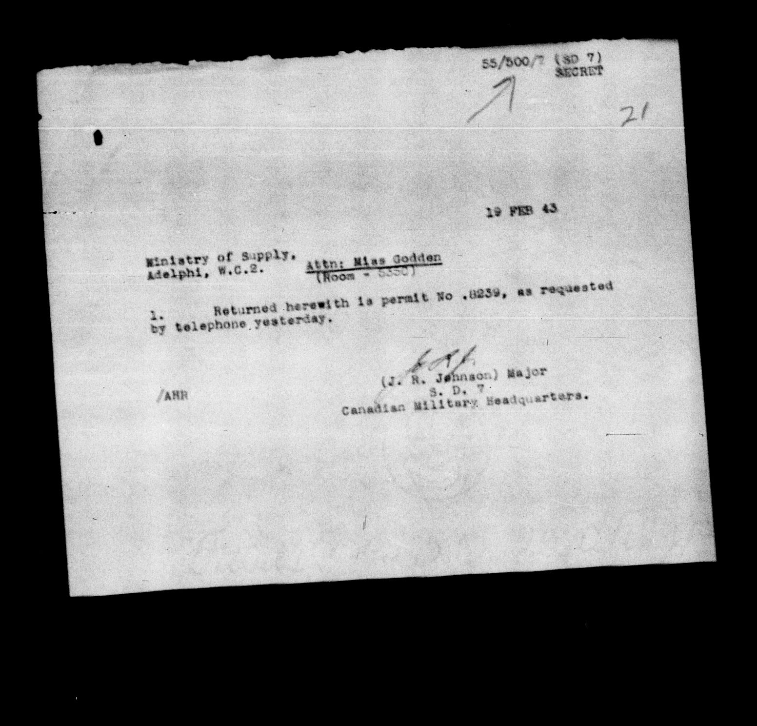 Canadian Military Headquarters, London (CMHQ), Files Block No. 55 - 5772