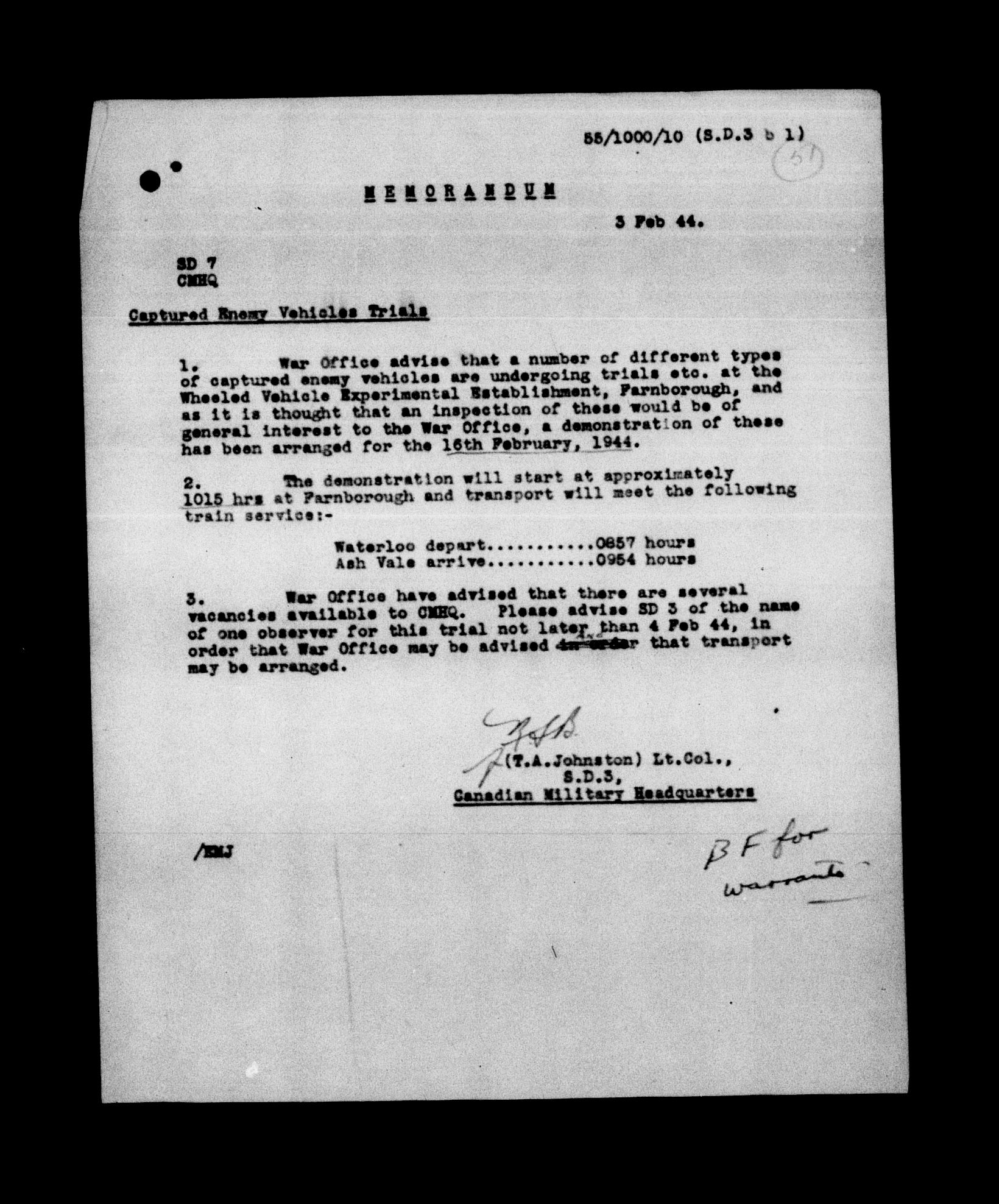 Canadian Military Headquarters, London (CMHQ), Files Block No. 55 - 5781