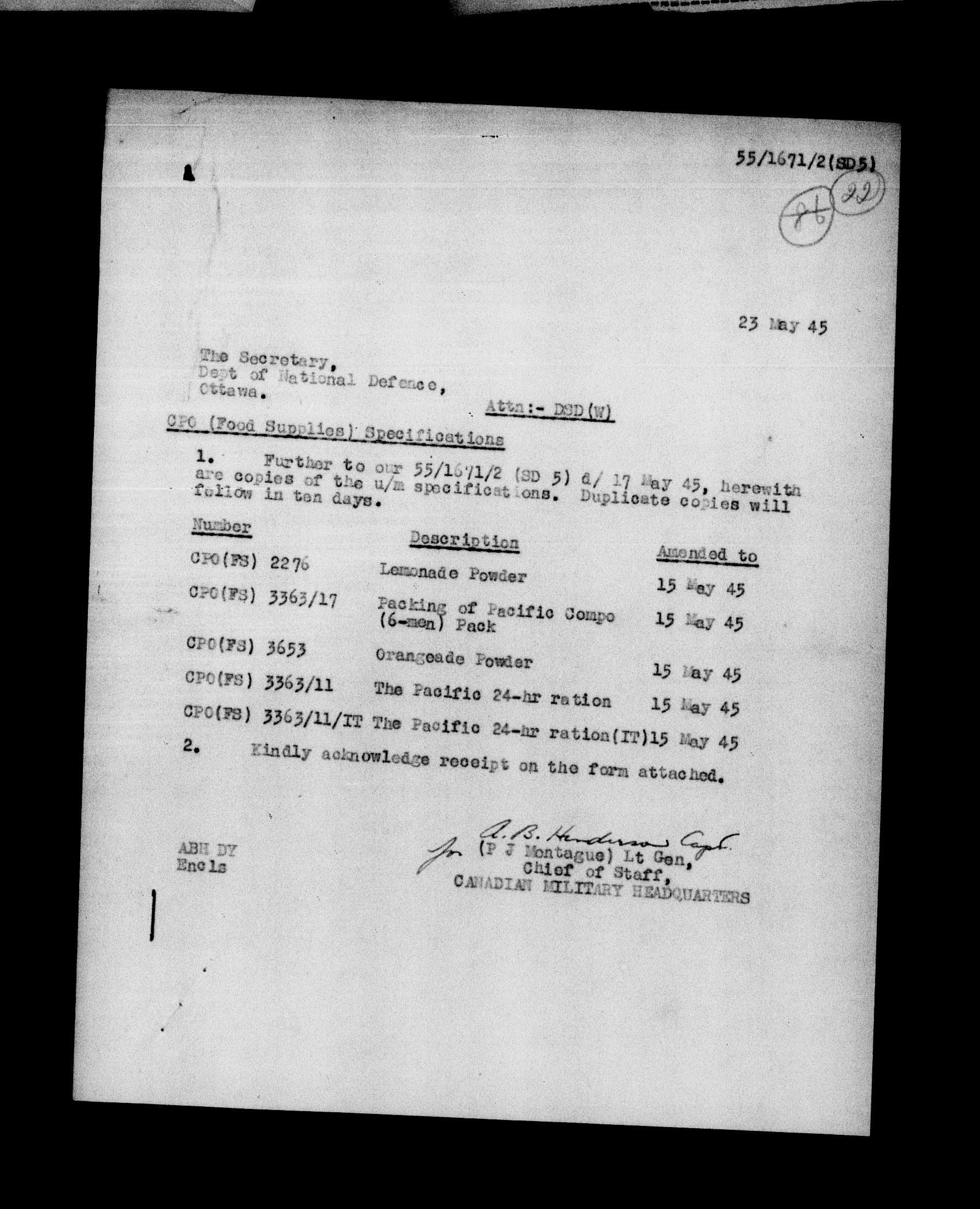 Canadian Military Headquarters, London (CMHQ), Files Block No. 55 - 5786