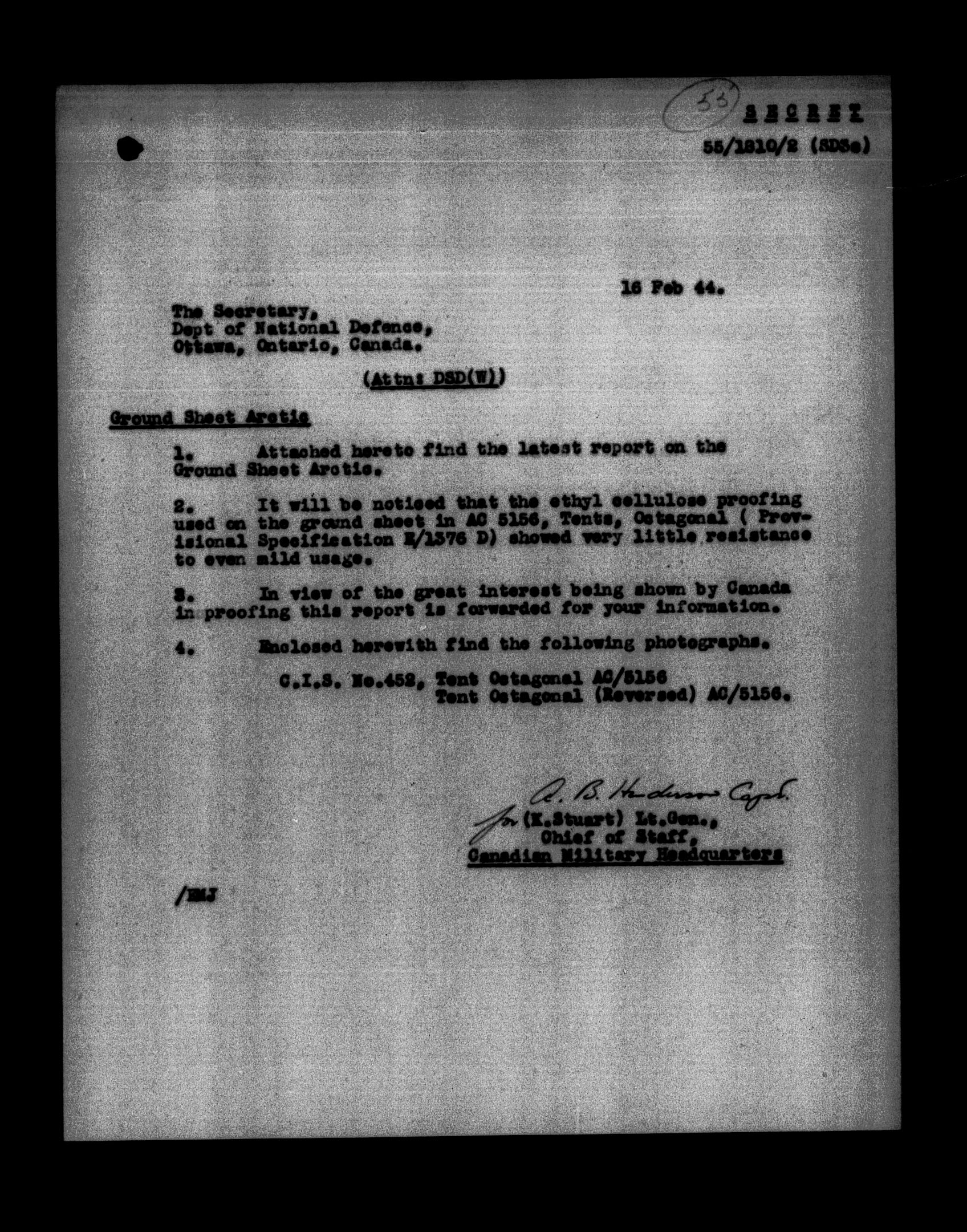 Canadian Military Headquarters, London (CMHQ), Files Block No. 55 - 5787