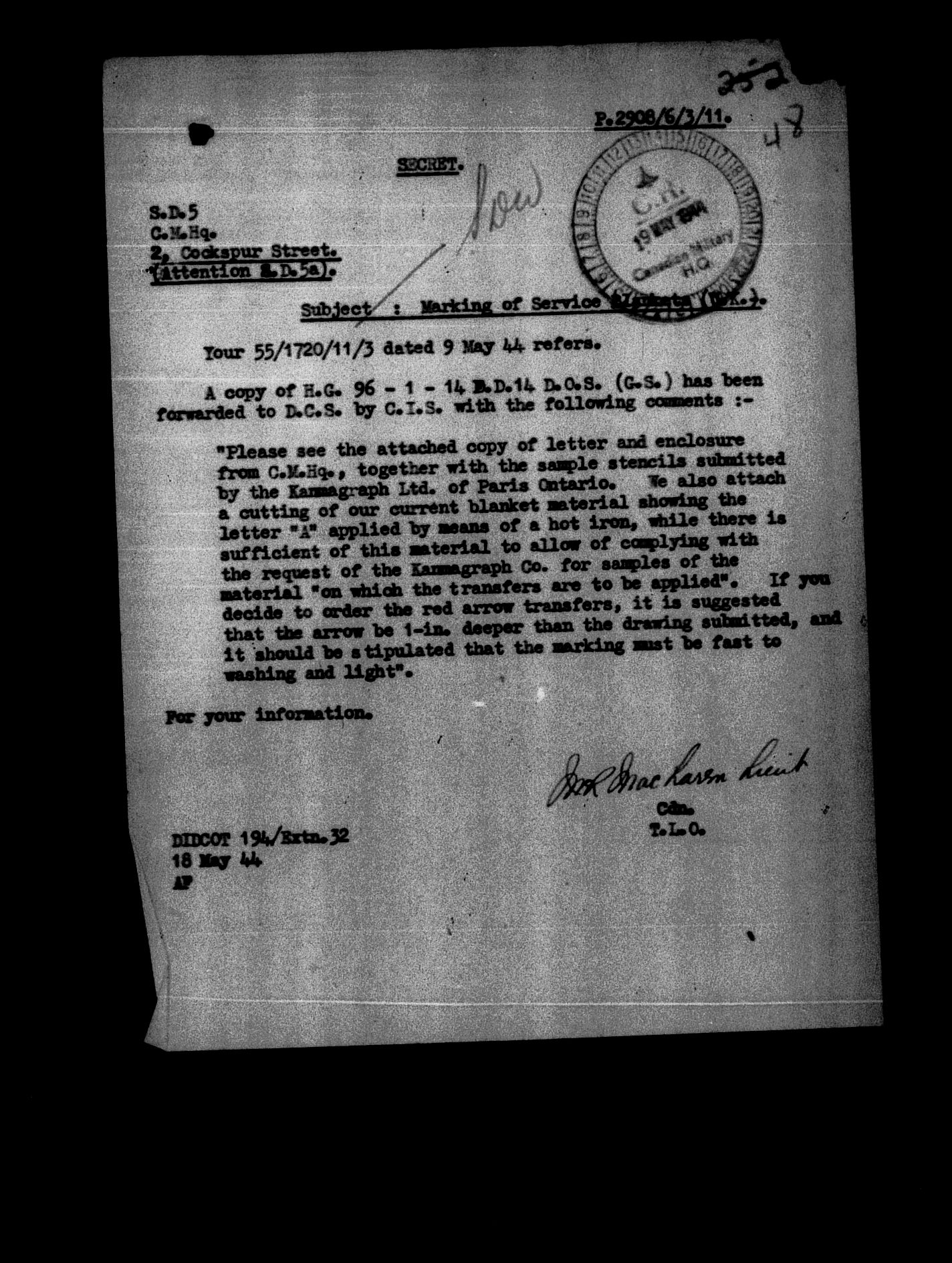 Canadian Military Headquarters, London (CMHQ), Files Block No. 55 - 5787