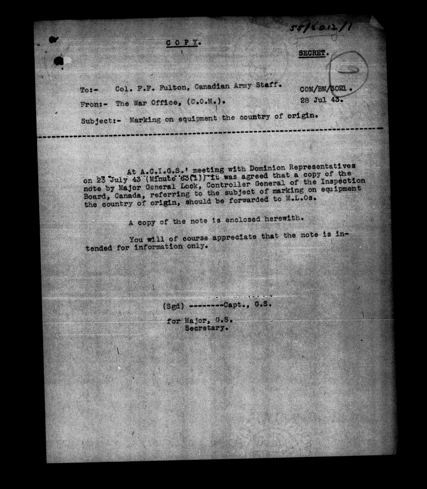 Canadian Military Headquarters, London (CMHQ), Files Block No. 55 - 5788