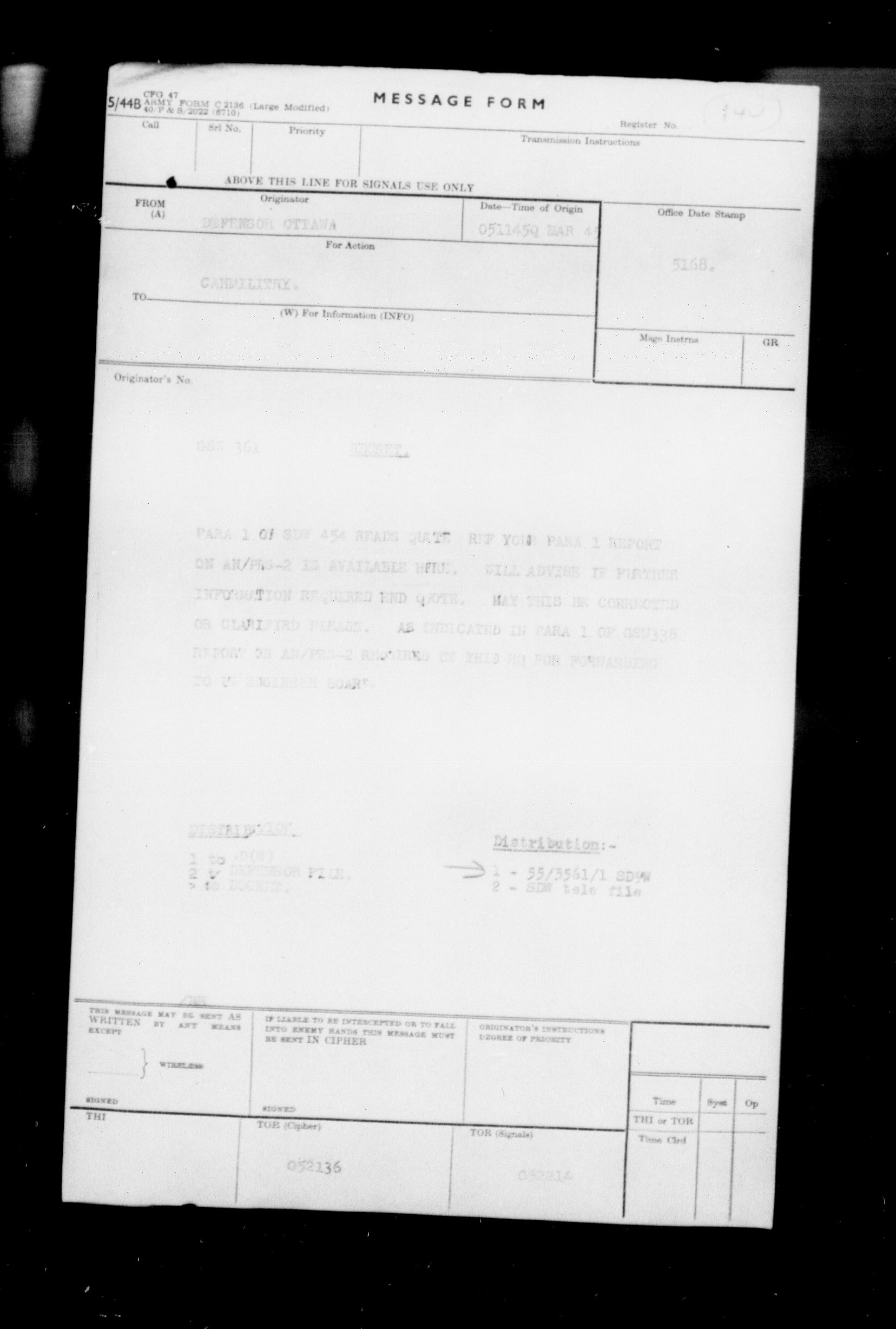 Canadian Military Headquarters, London (CMHQ), Files Block No. 55 - 5805