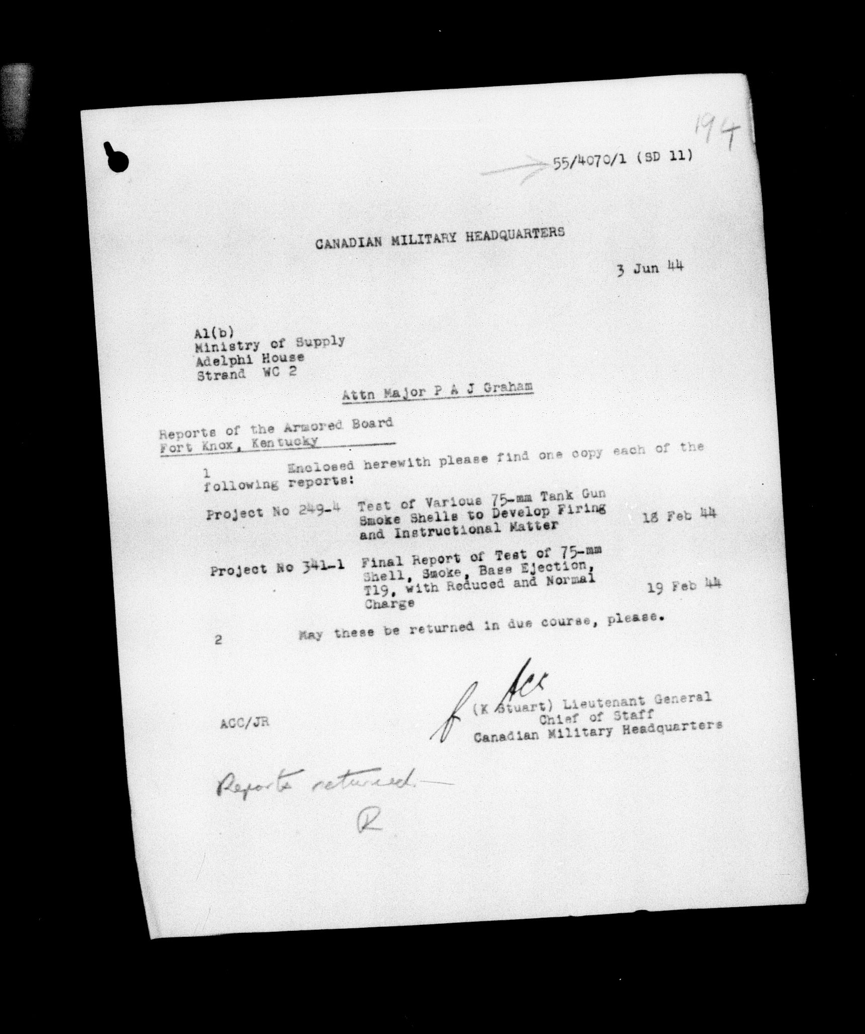 Canadian Military Headquarters, London (CMHQ), Files Block No. 55 - 5806