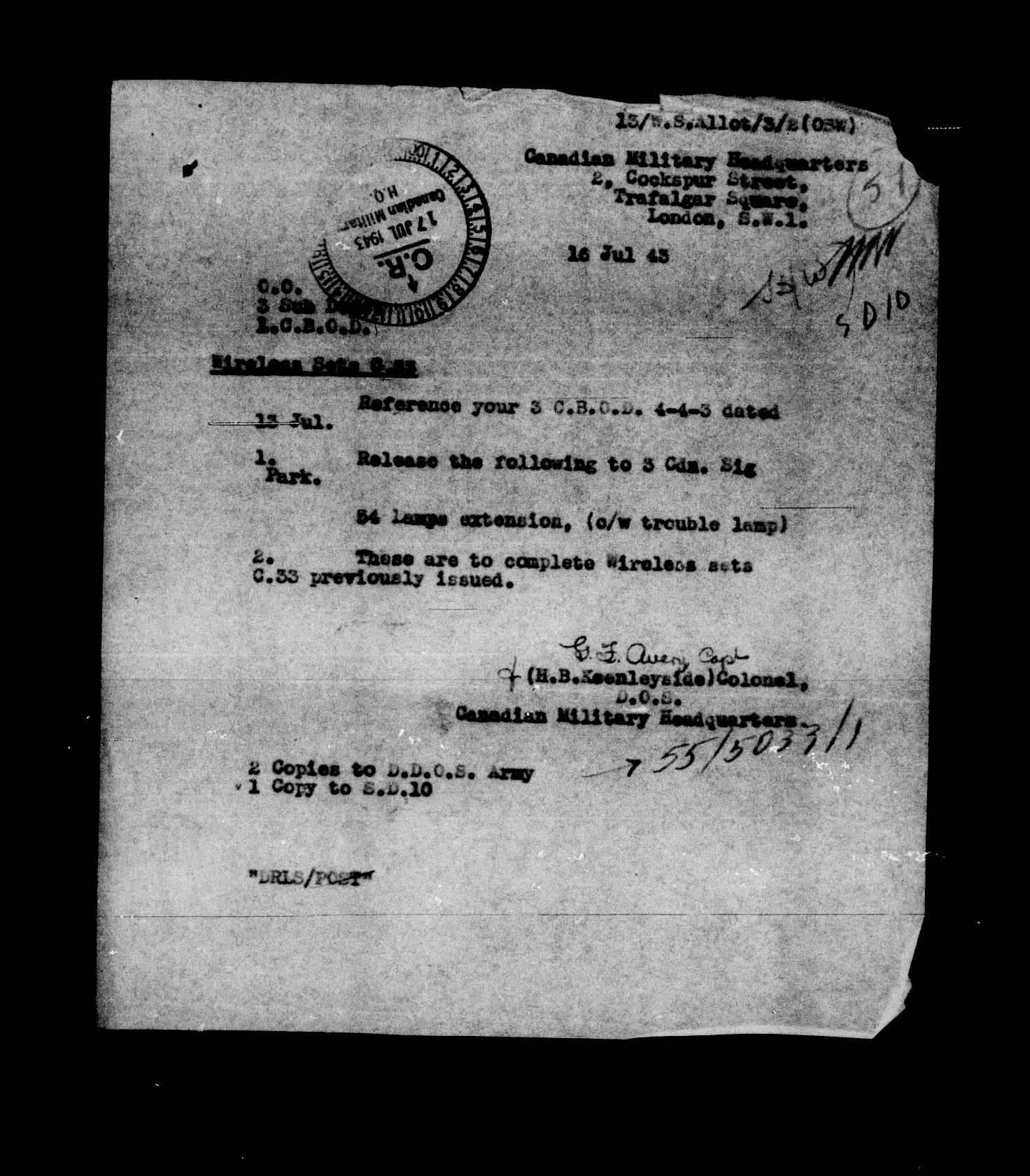 Canadian Military Headquarters, London (CMHQ), Files Block No. 55 - 5816