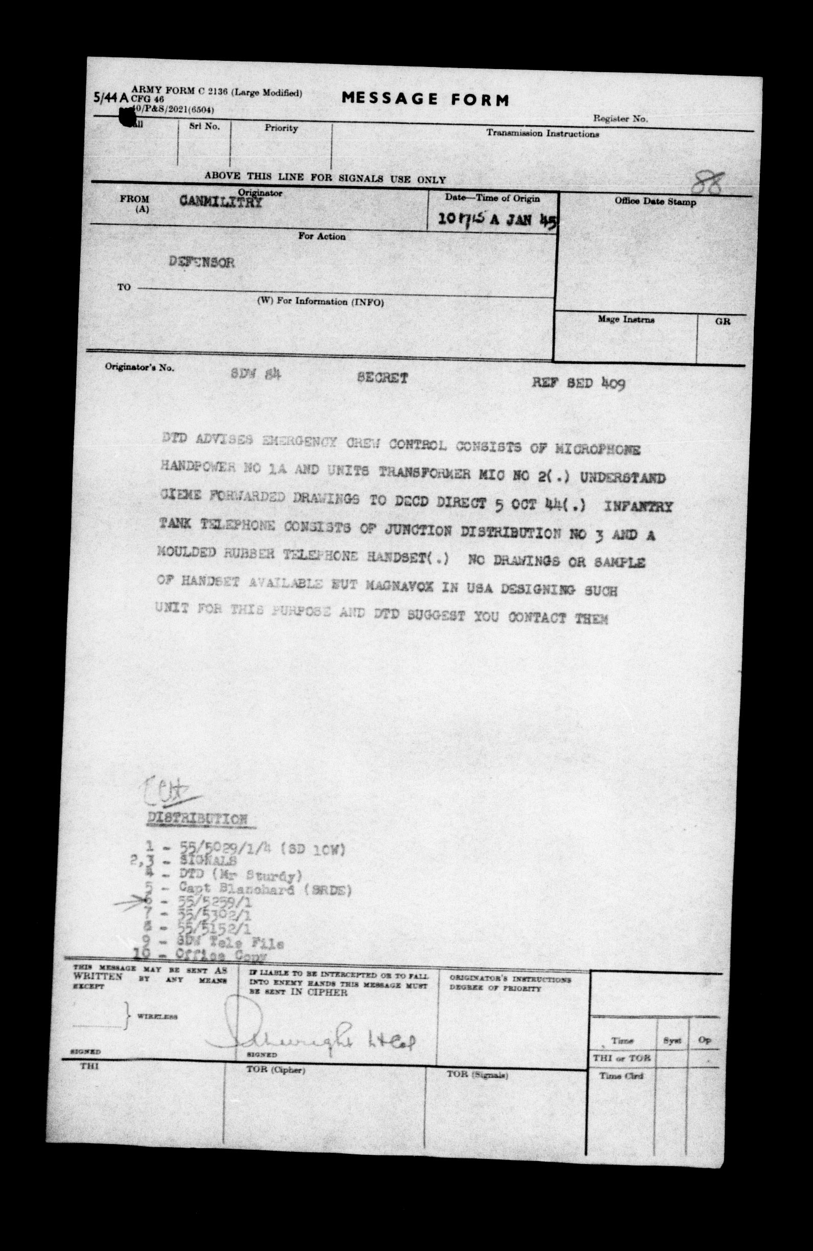 Canadian Military Headquarters, London (CMHQ), Files Block No. 55 - 5819