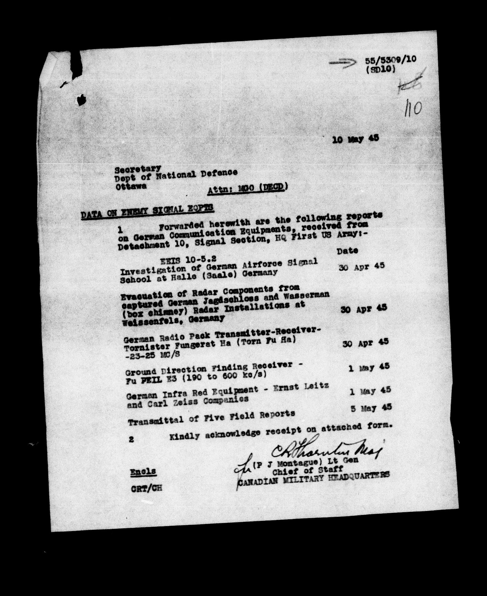 Canadian Military Headquarters, London (CMHQ), Files Block No. 55 - 5820