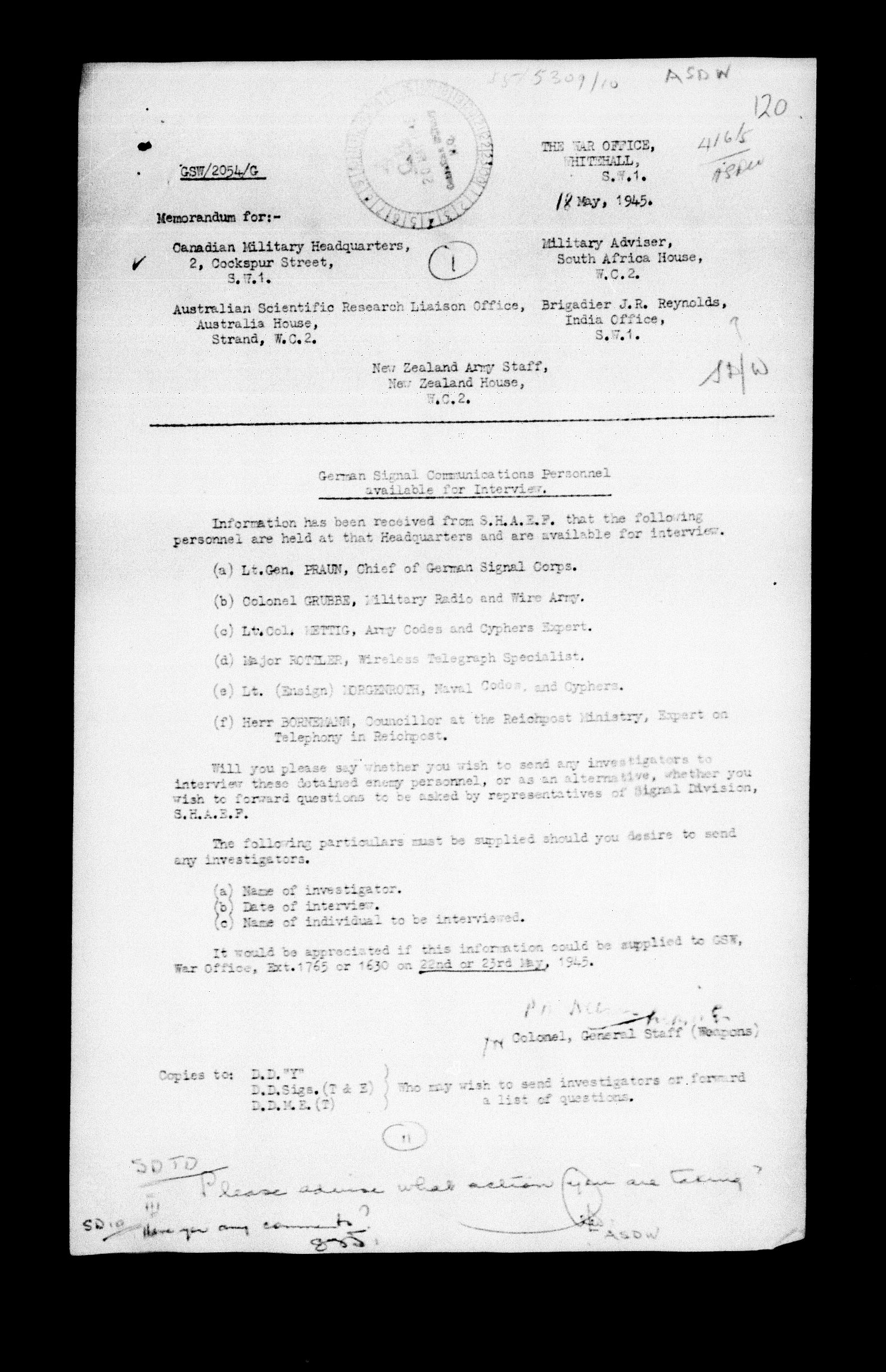Canadian Military Headquarters, London (CMHQ), Files Block No. 55 - 5820