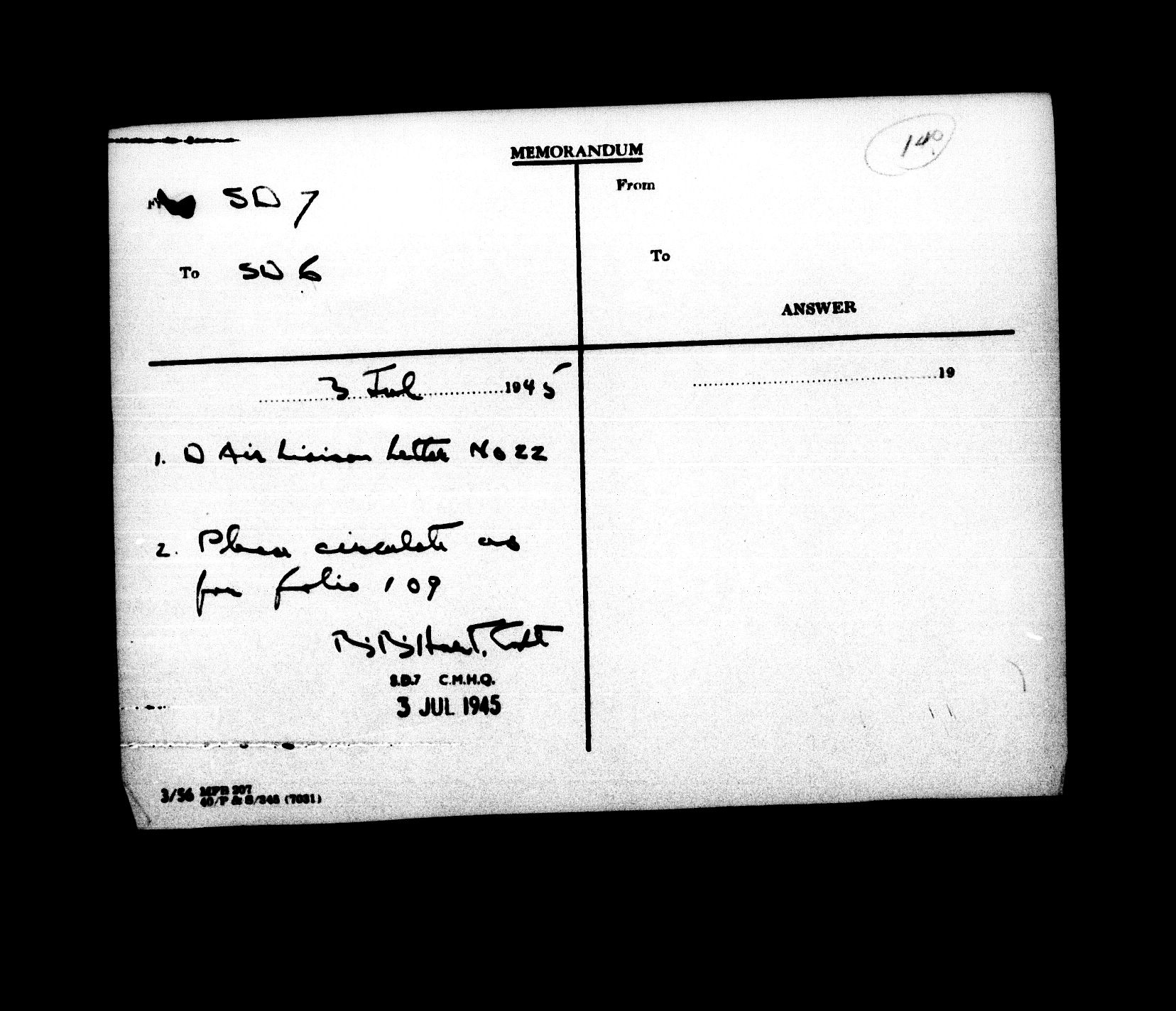 Canadian Military Headquarters, London (CMHQ), Files Block No. 55 - 5833