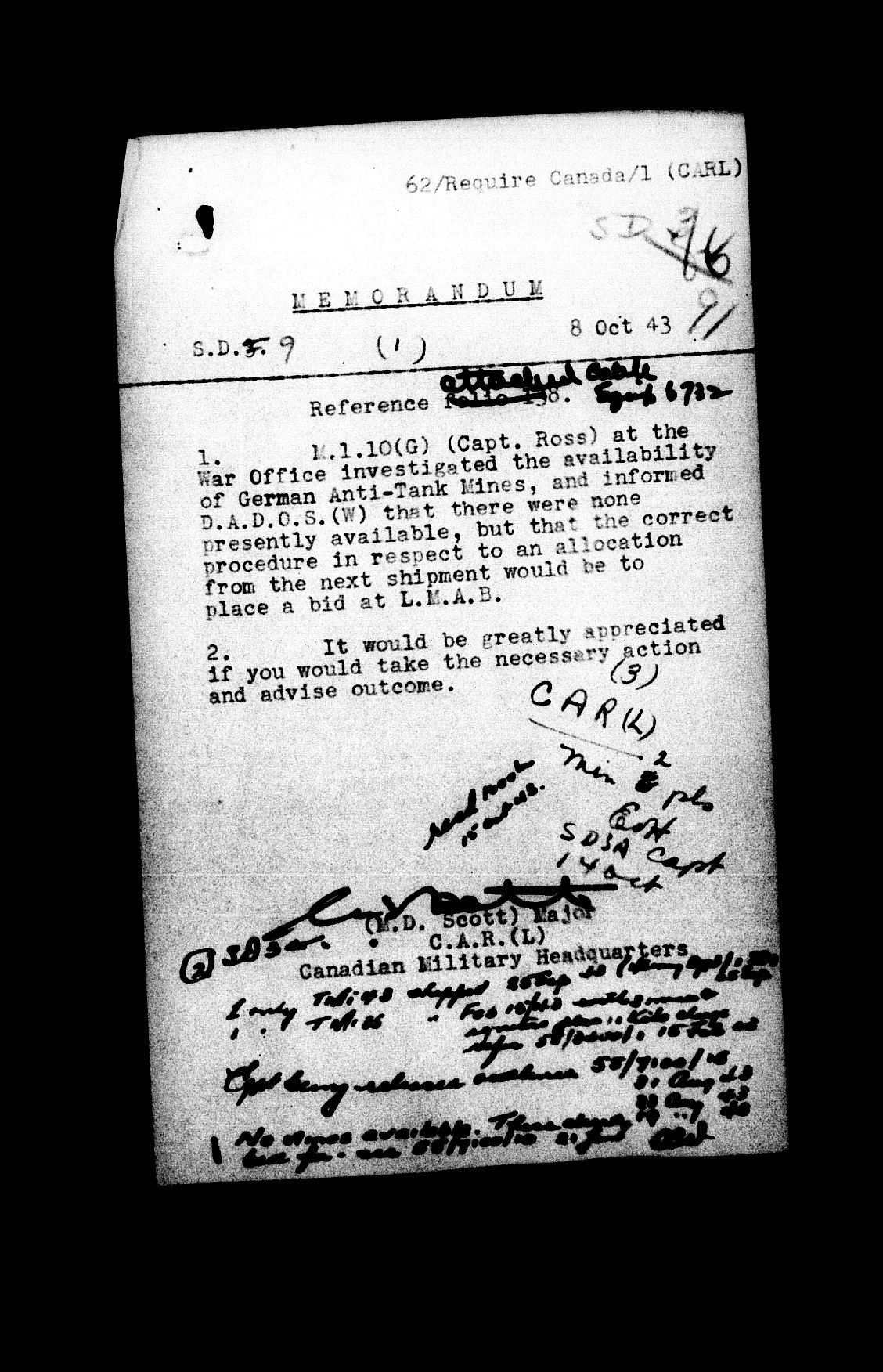 Canadian Military Headquarters, London (CMHQ), Files Block No. 55 - 5834