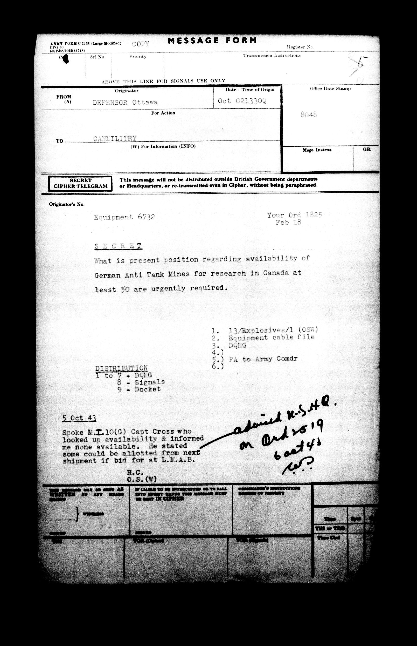 Canadian Military Headquarters, London (CMHQ), Files Block No. 55 - 5834
