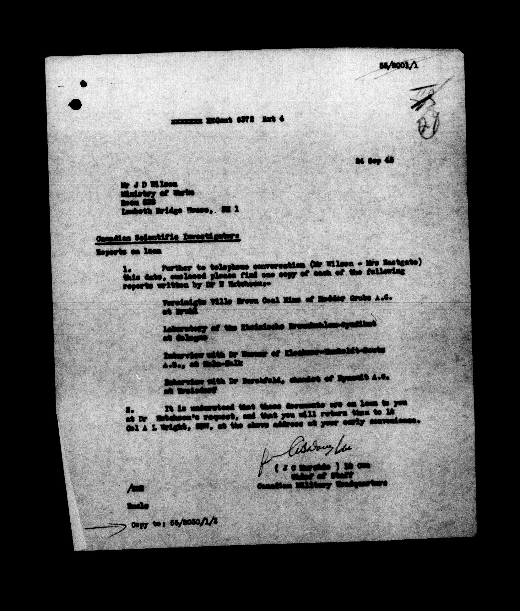 Canadian Military Headquarters, London (CMHQ), Files Block No. 55 - 5843