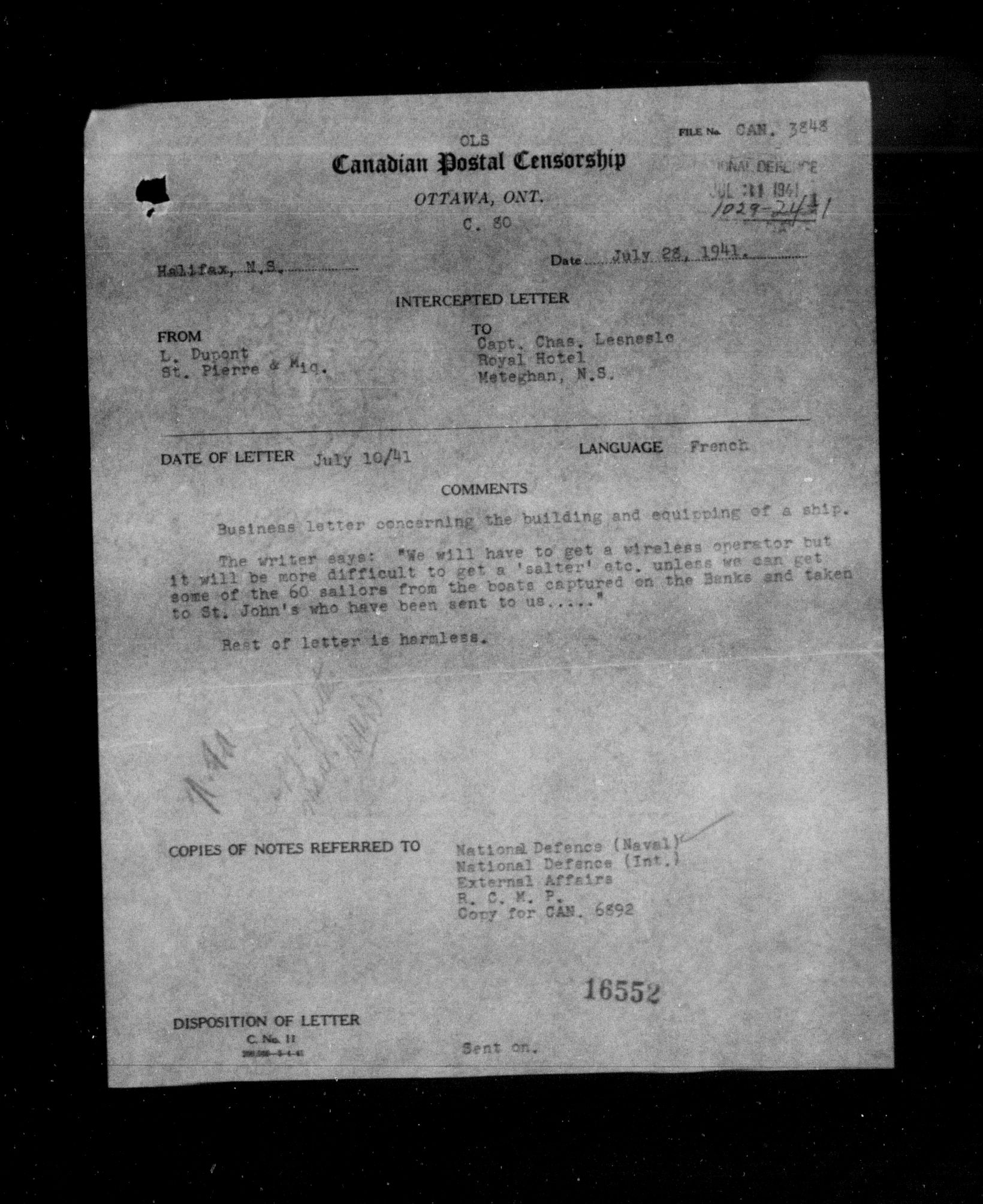 Department of National Defence, Director of Naval Intelligence: subject files : C-5865