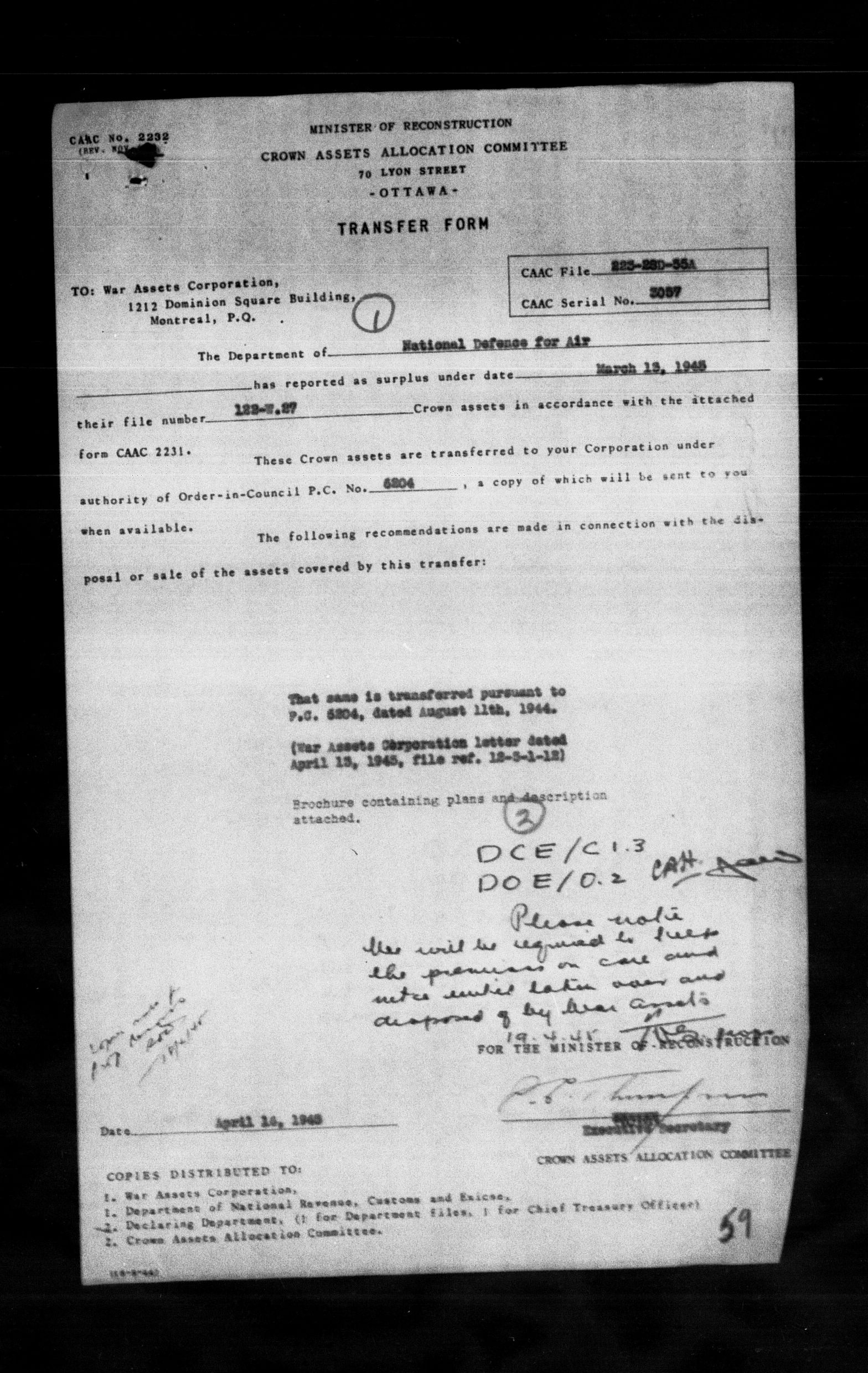 Royal Canadian Air Force second central registry and file classification system - 5882