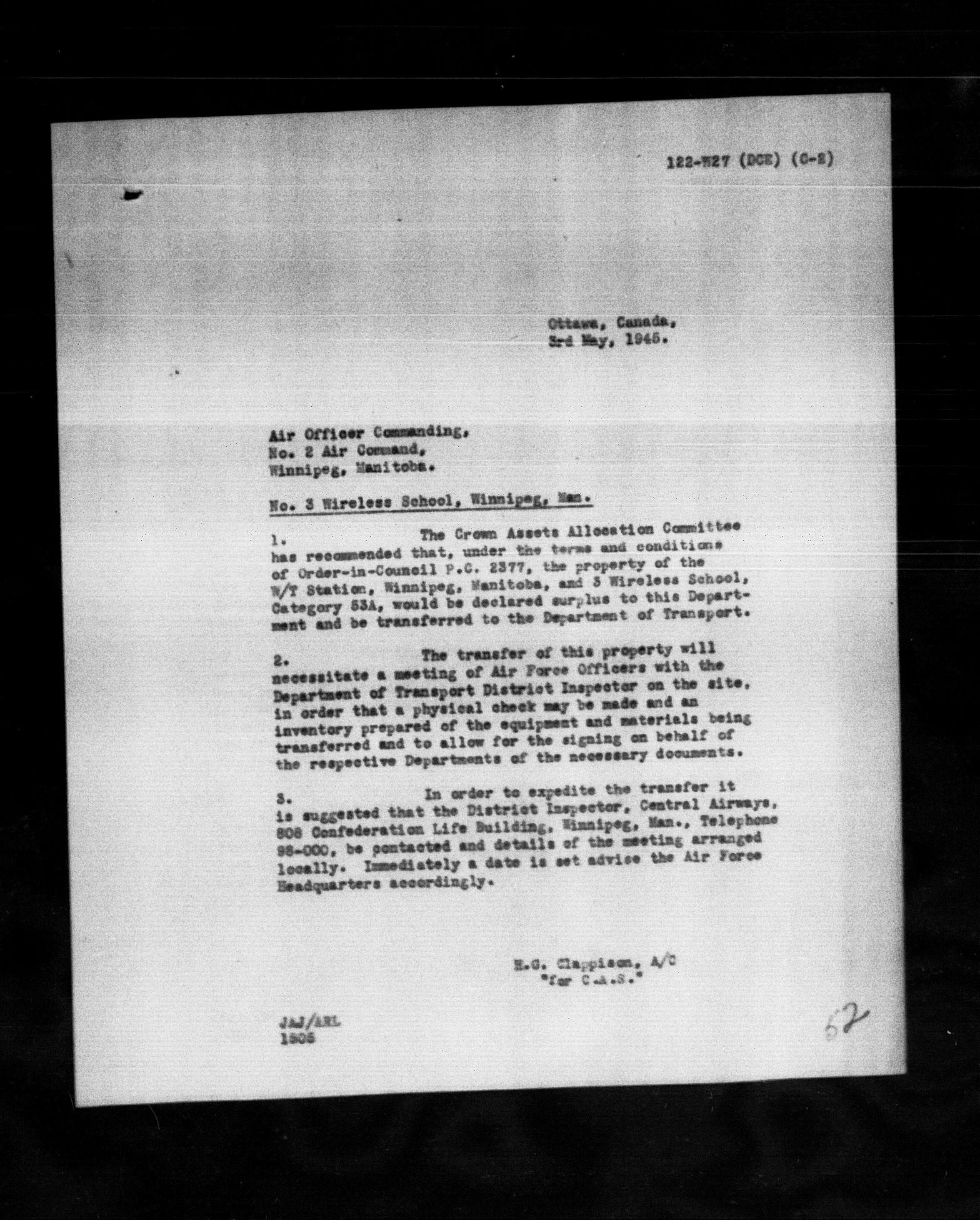 Royal Canadian Air Force second central registry and file classification system - 5882