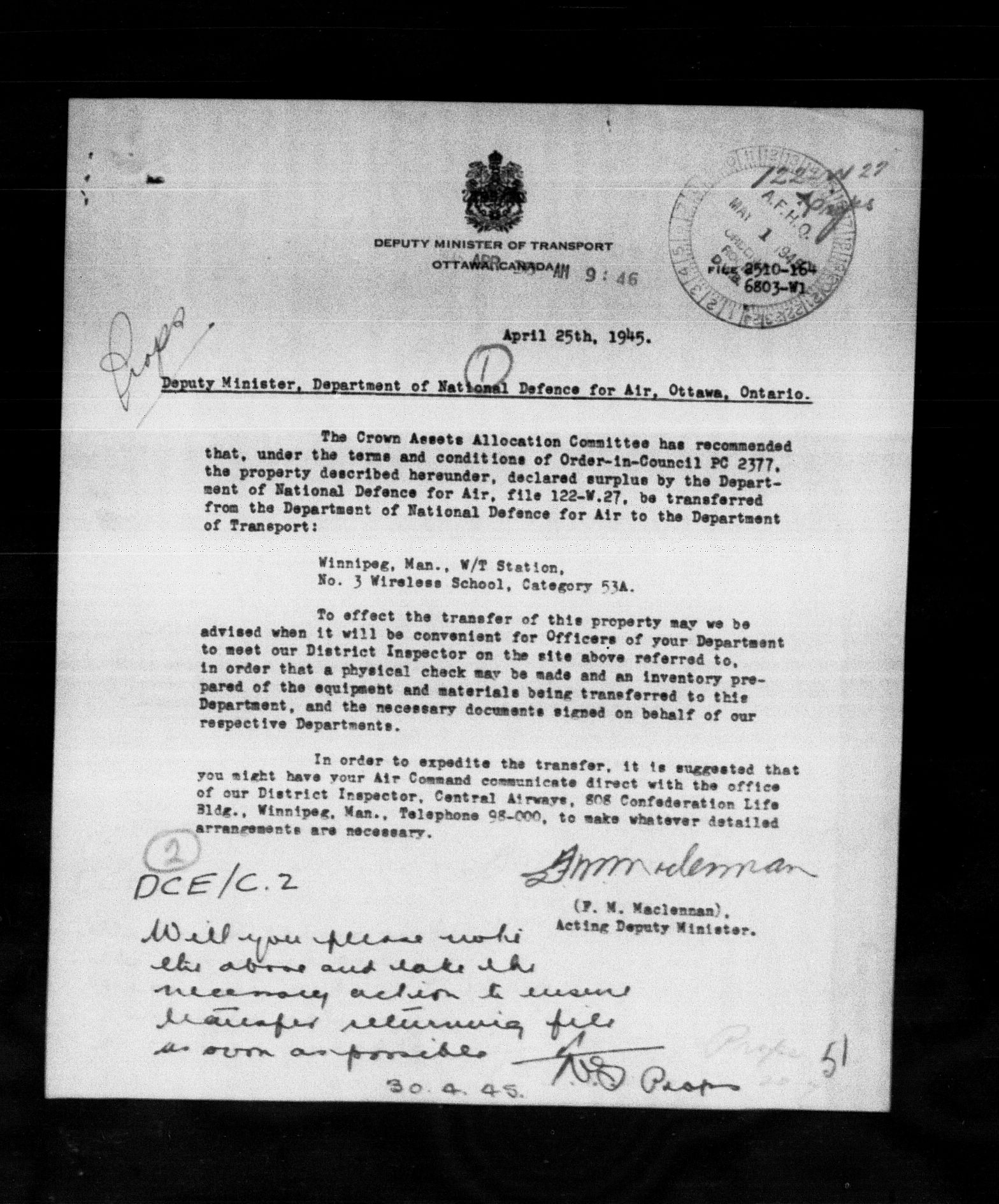 Royal Canadian Air Force second central registry and file classification system - 5882