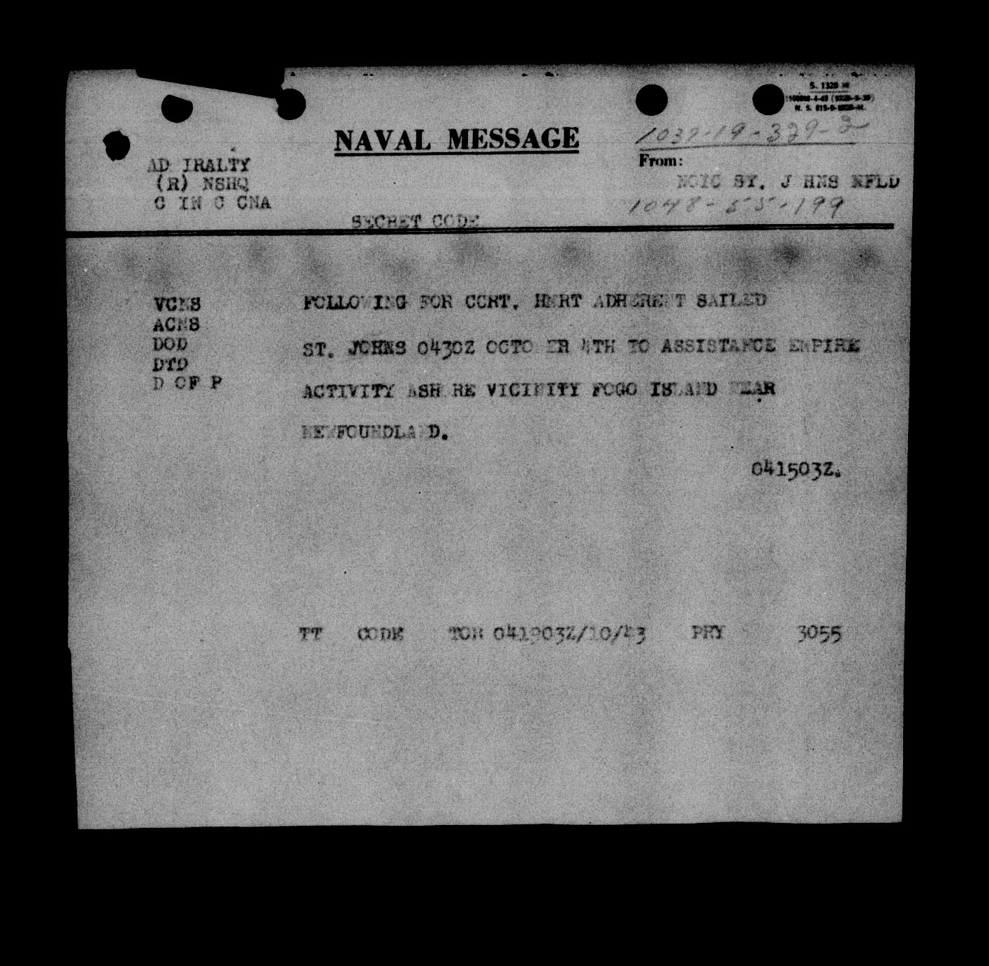 Royal Canadian Navy : Movements of the HMS ships - 5889