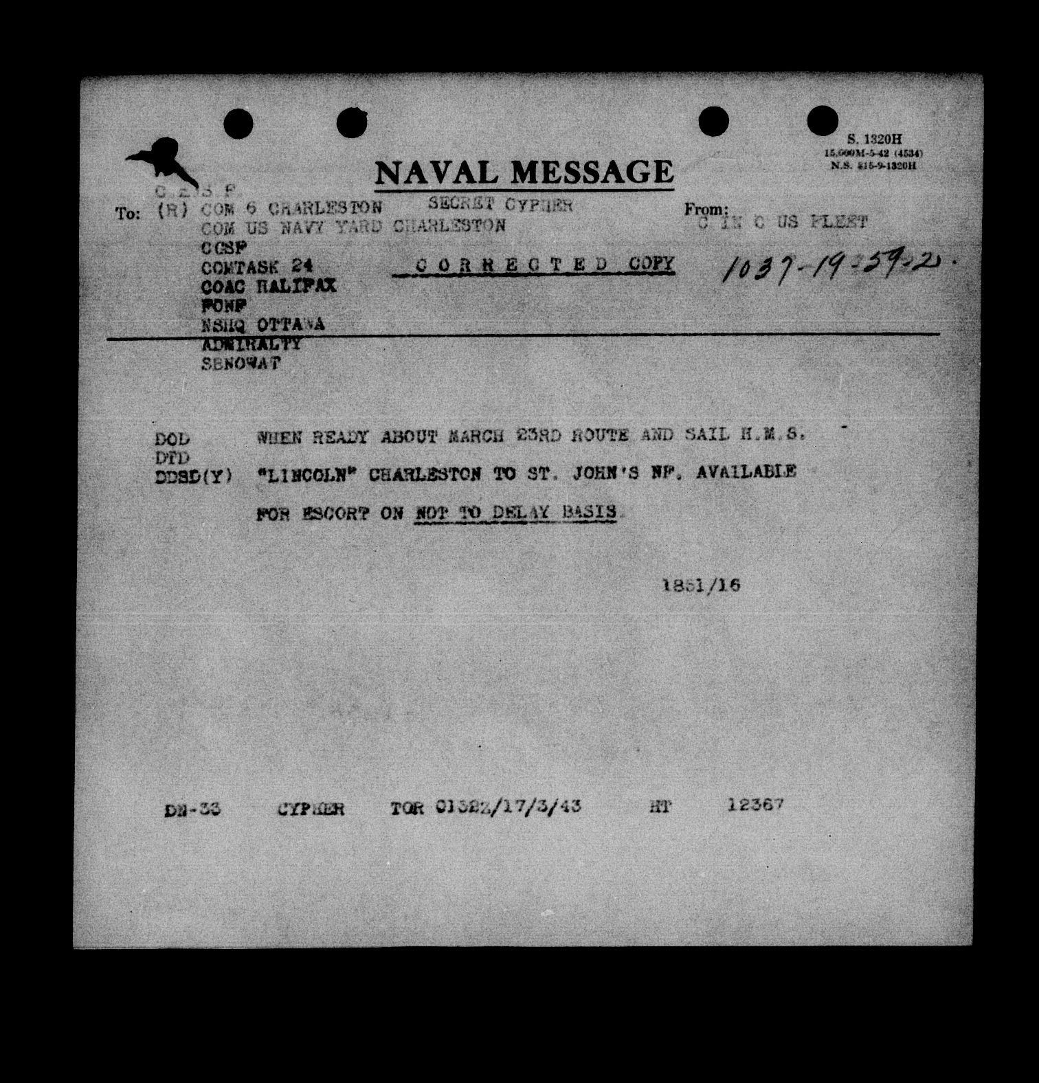 Royal Canadian Navy : Movements of the HMS ships - 5889