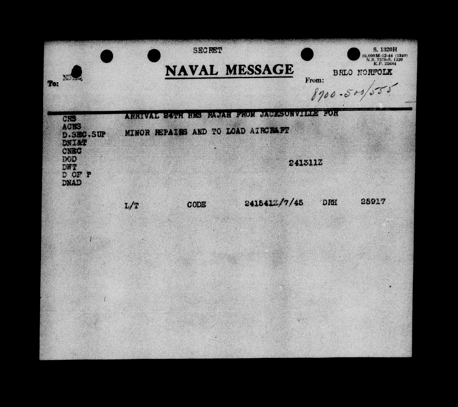 Royal Canadian Navy : Movements of the HMS ships - 5891