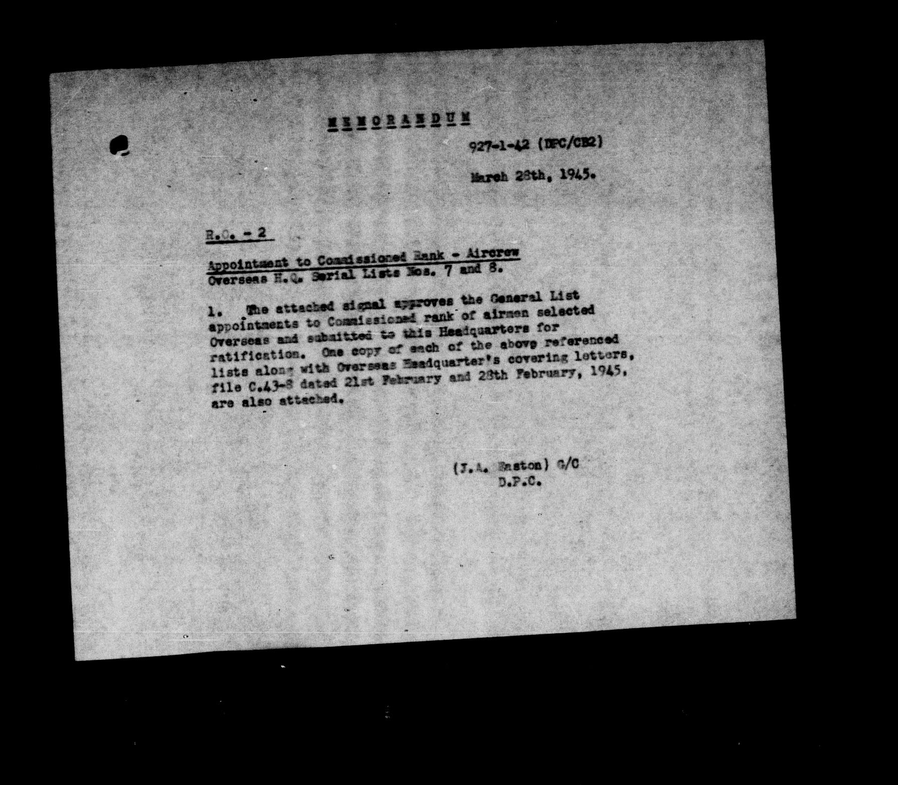 Royal Canadian Air Force second central registry and file classification system - 5906