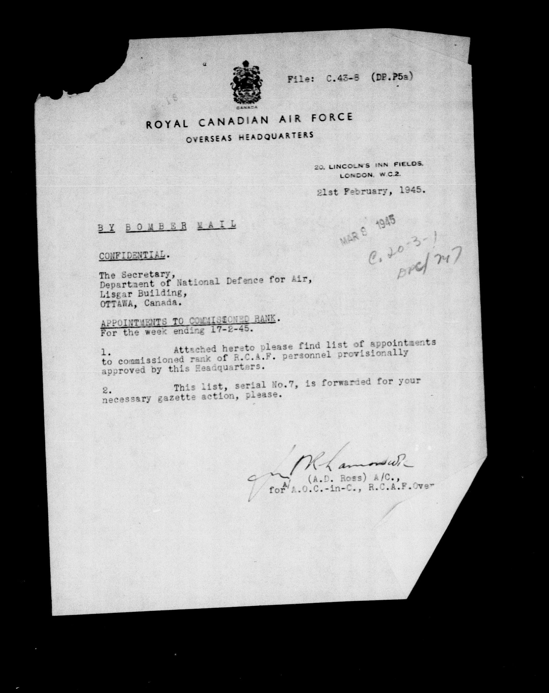 Royal Canadian Air Force second central registry and file classification system - 5906