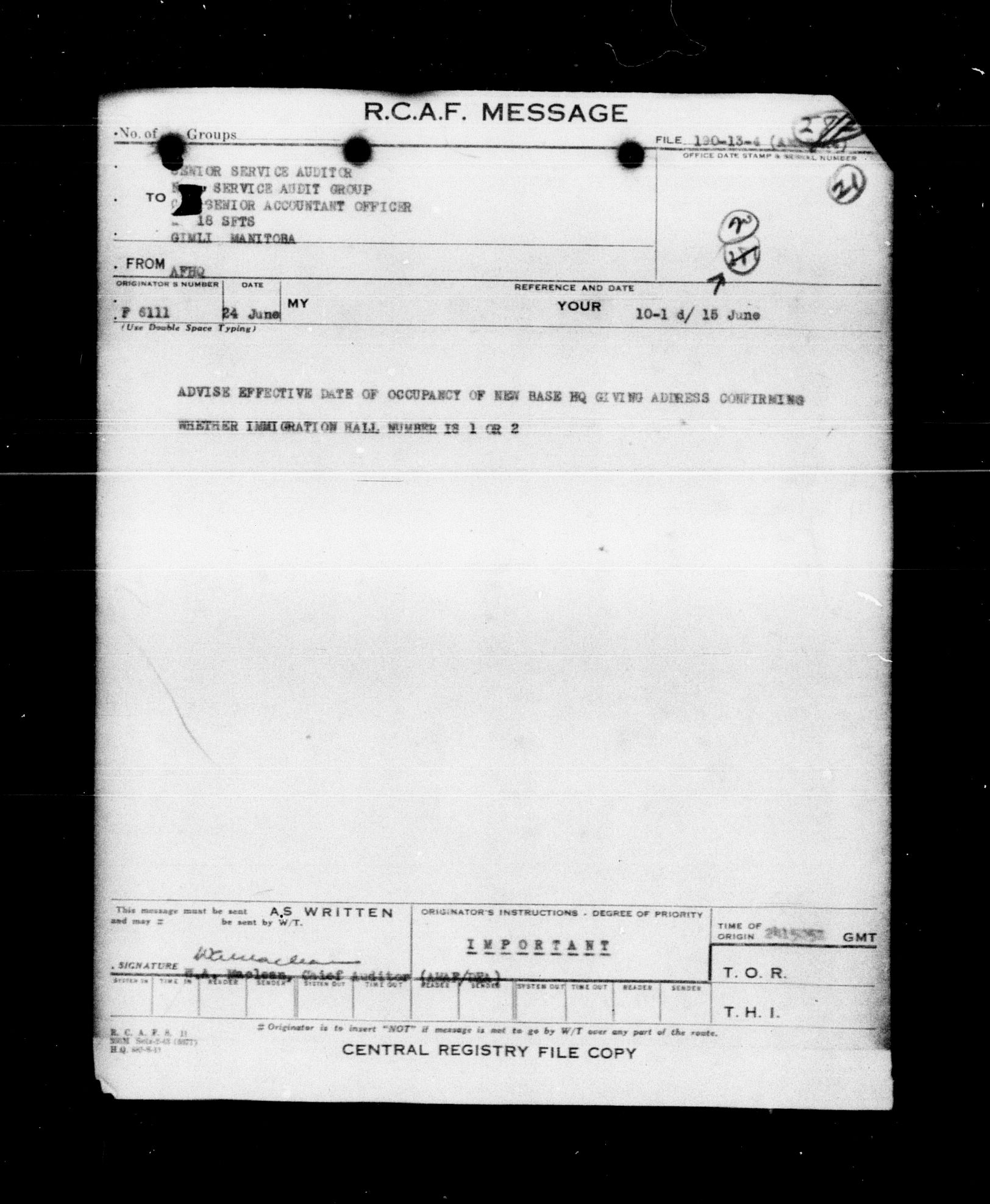 Royal Canadian Air Force second central registry and file classification system - 5912