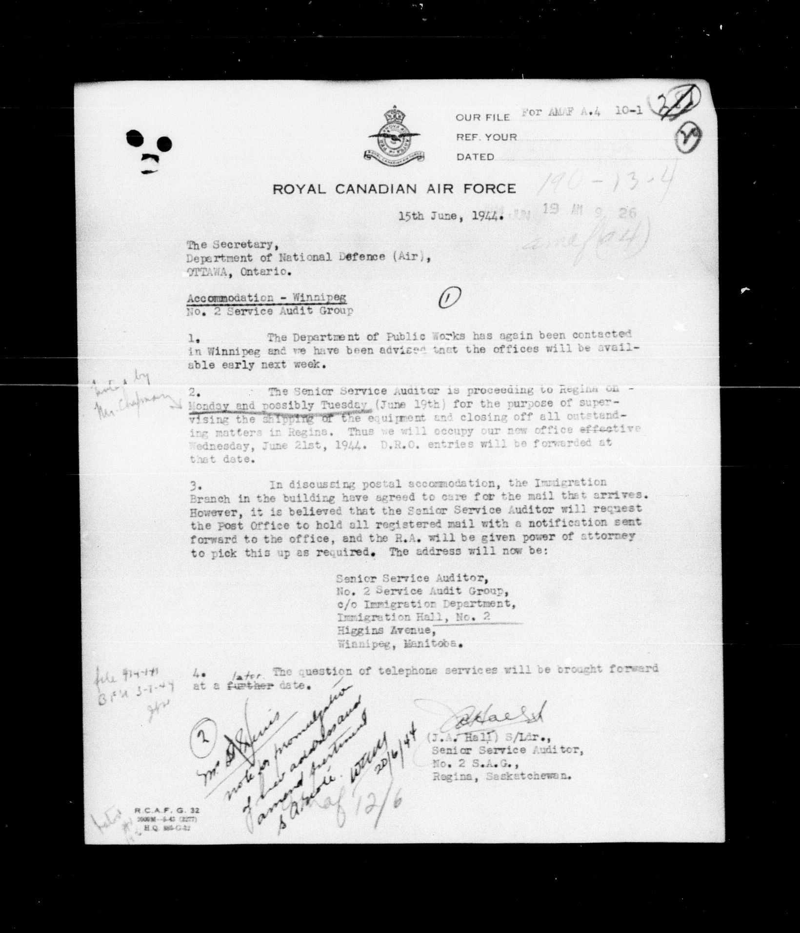 Royal Canadian Air Force second central registry and file classification system - 5912