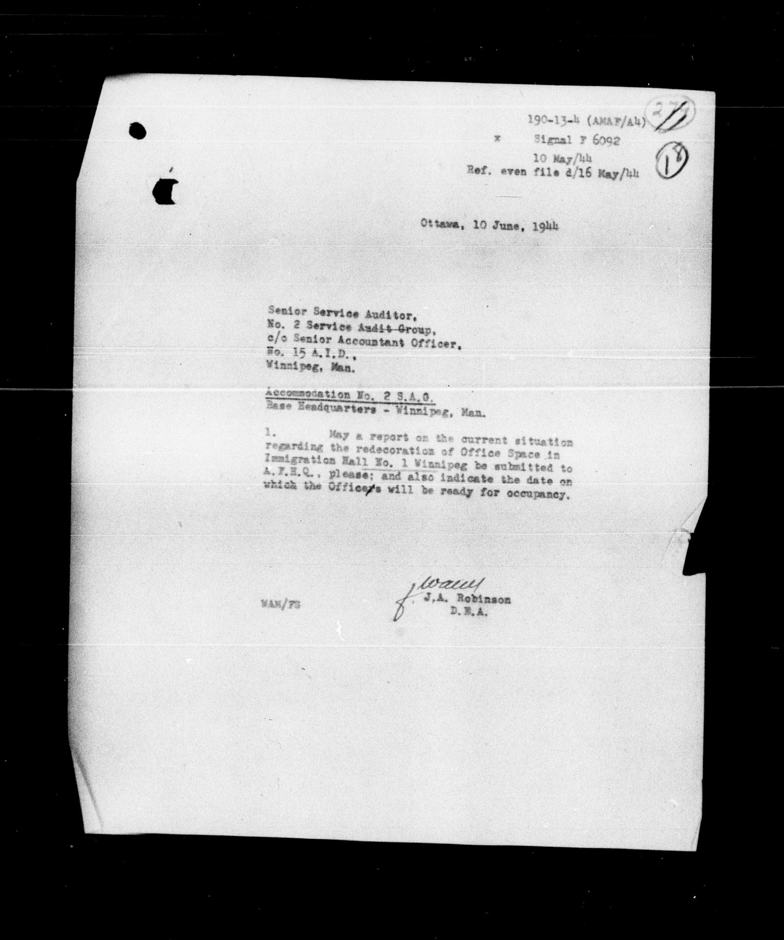 Royal Canadian Air Force second central registry and file classification system - 5912