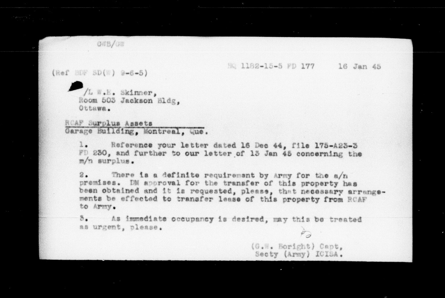 Royal Canadian Air Force second central registry and file classification system - 5913