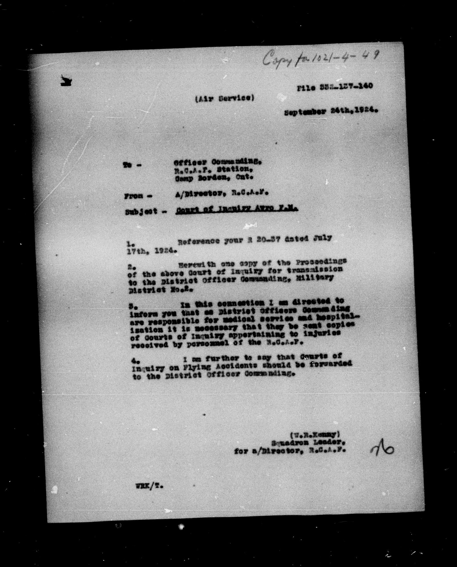 Royal Canadian Air Force second central registry and file classification system - 5918