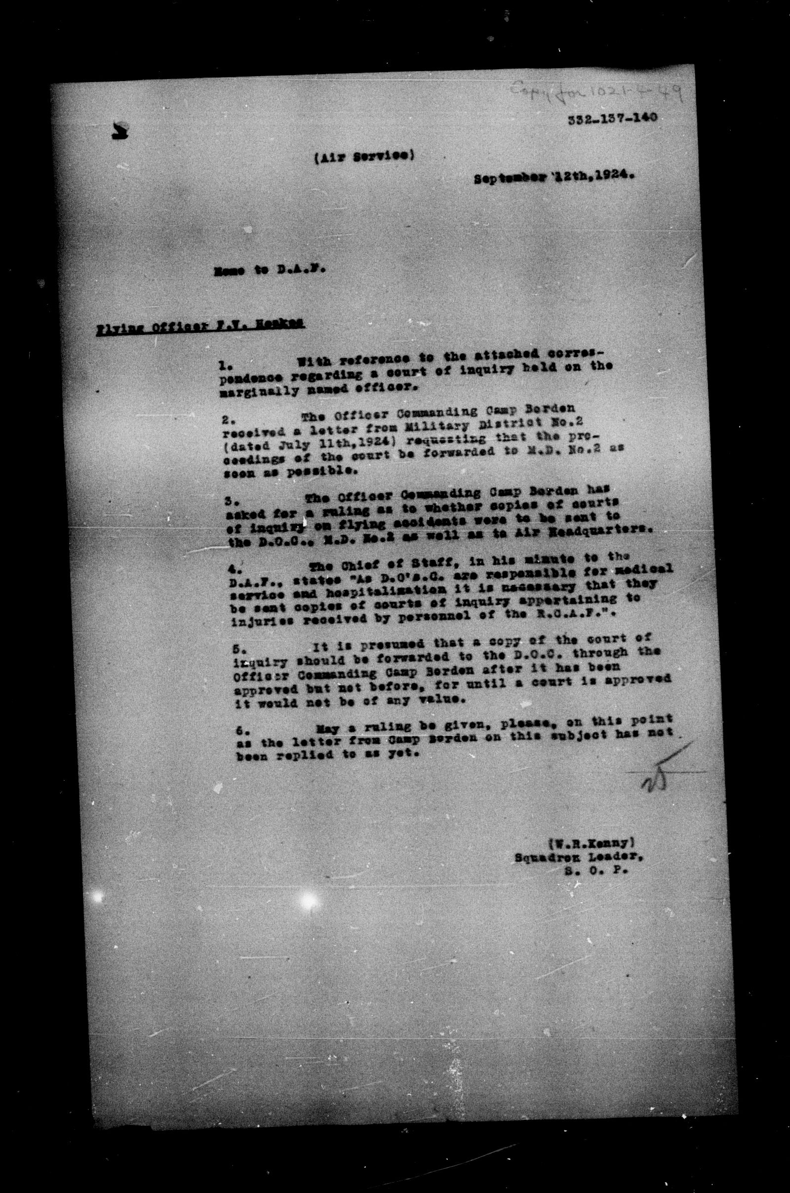 Royal Canadian Air Force second central registry and file classification system - 5918