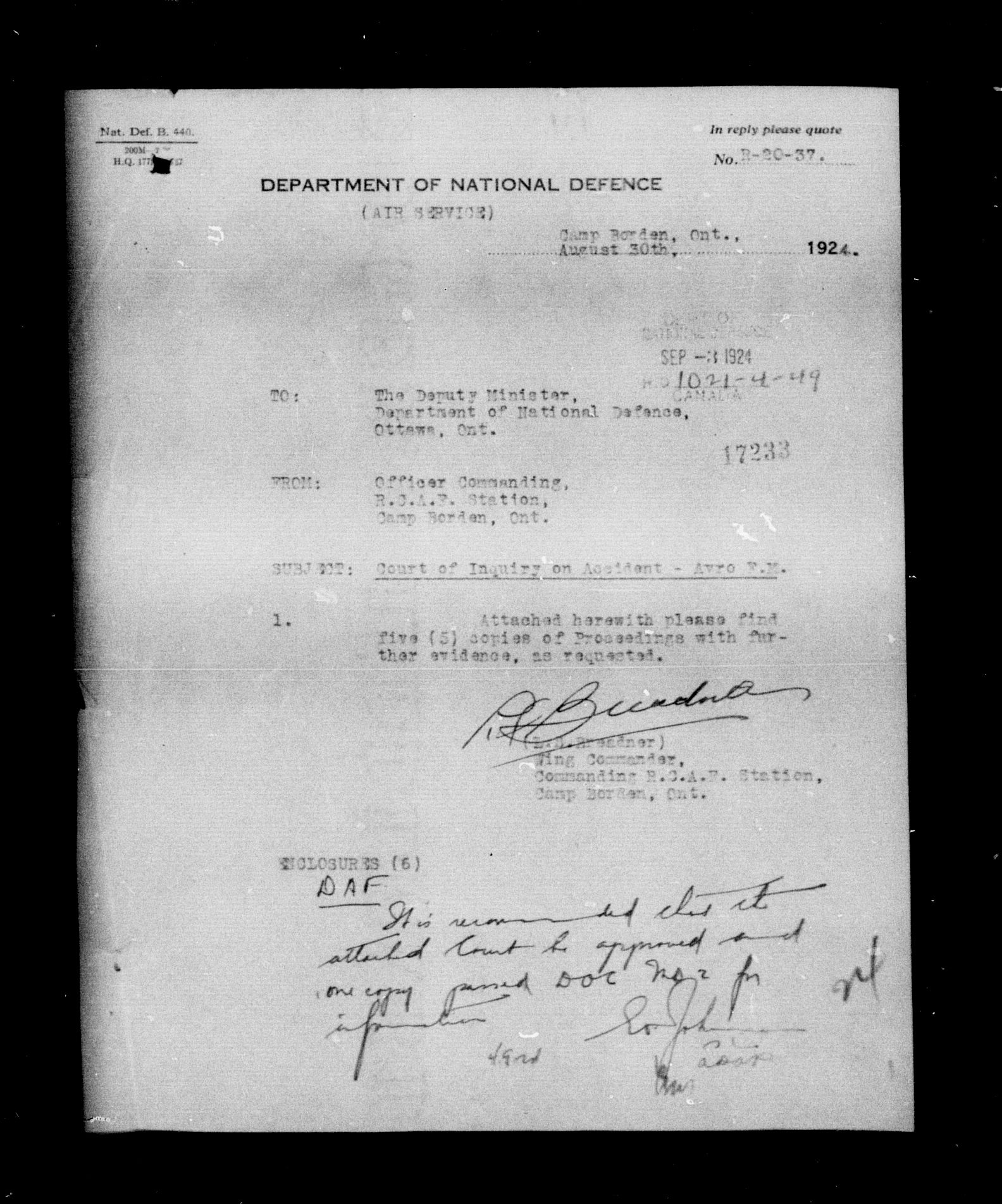 Royal Canadian Air Force second central registry and file classification system - 5918
