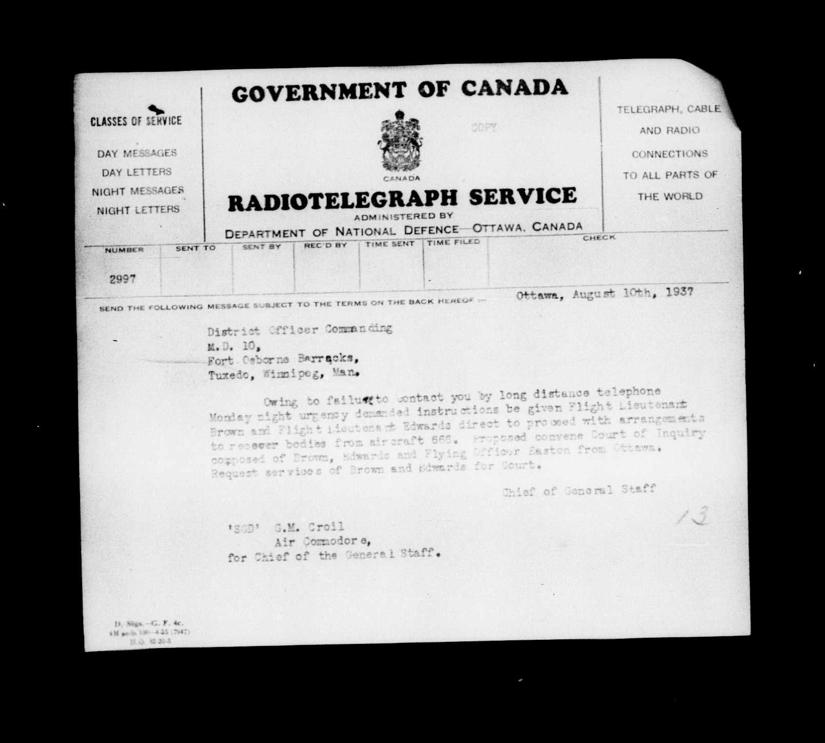Royal Canadian Air Force second central registry and file classification system - 5920