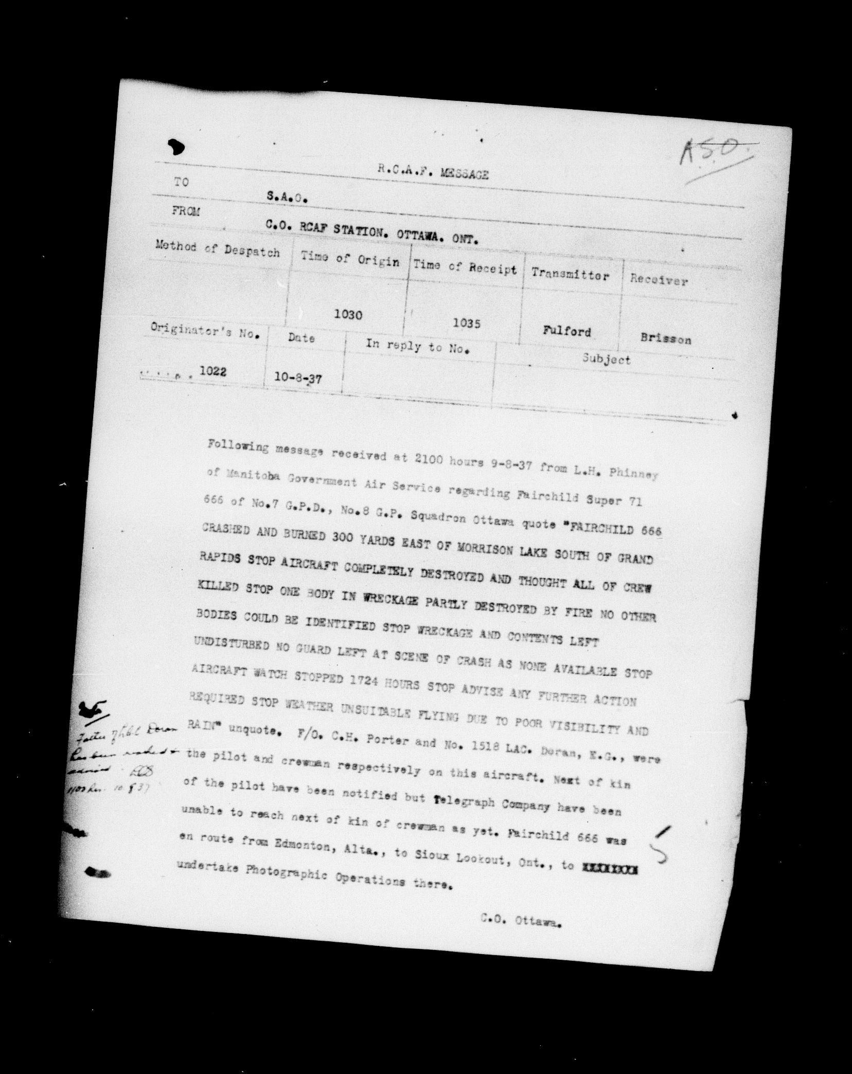 Royal Canadian Air Force second central registry and file classification system - 5920