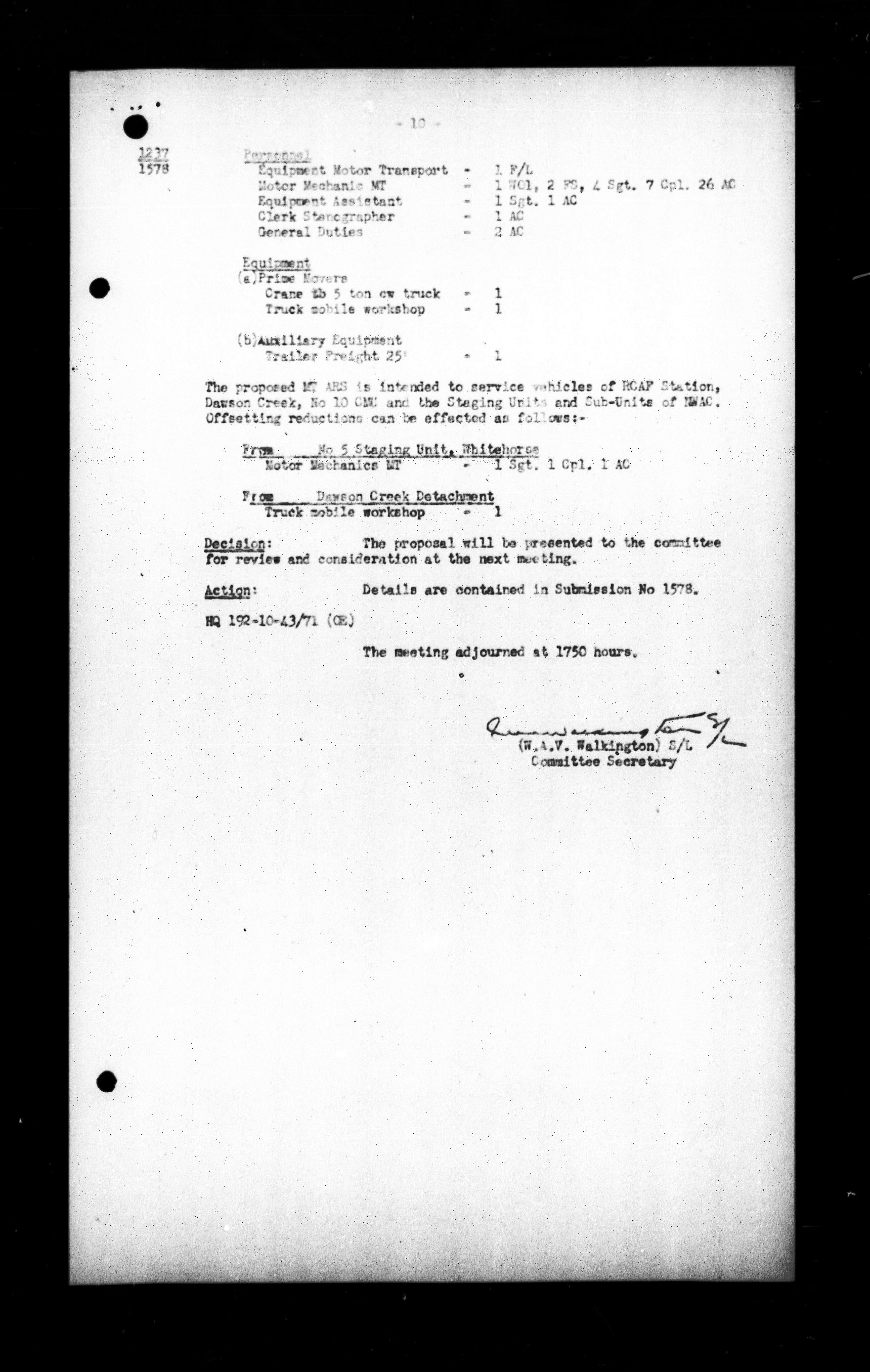 Royal Canadian Air Force second central registry and file classification system - 5922