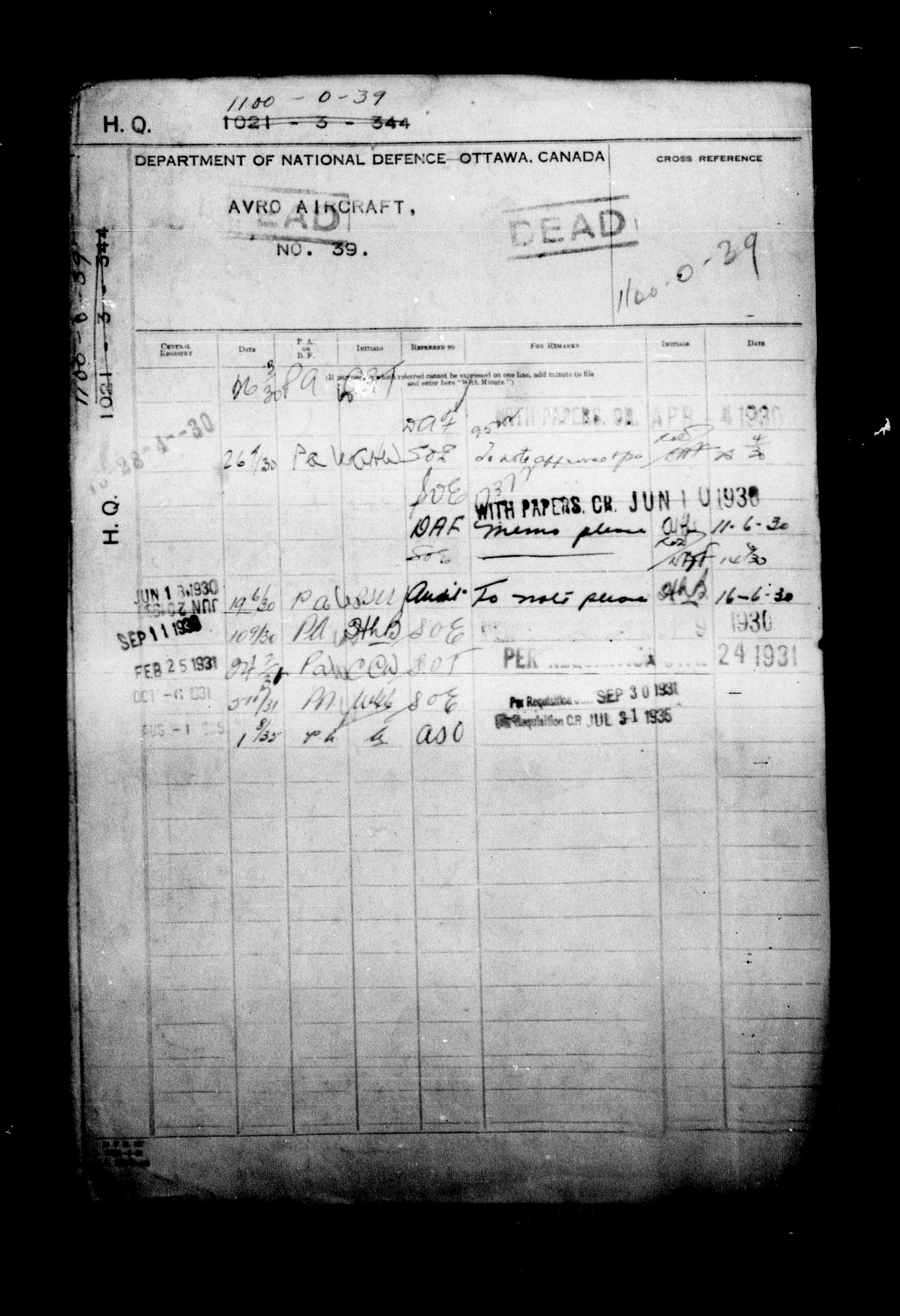 Royal Canadian Air Force second central registry and file classification system - 5929