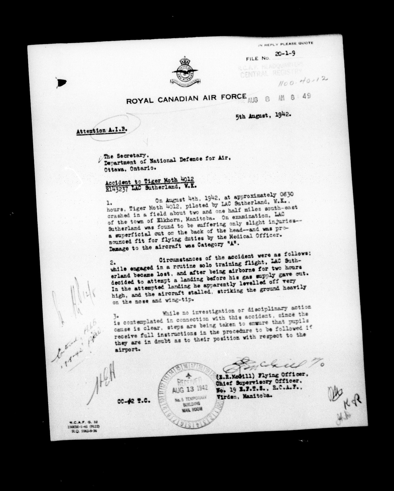 Royal Canadian Air Force second central registry and file classification system - 5931
