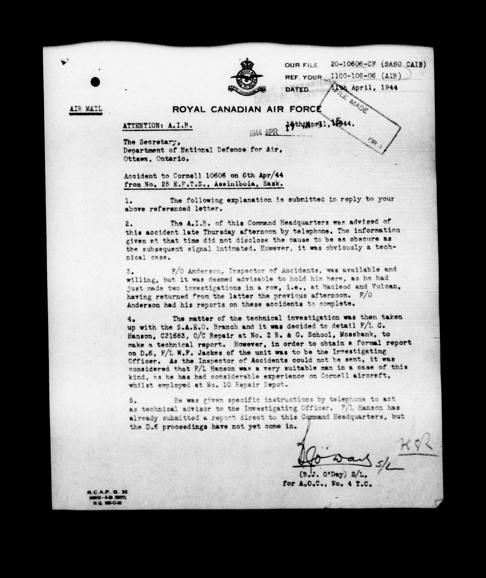 Royal Canadian Air Force second central registry and file classification system - 5933